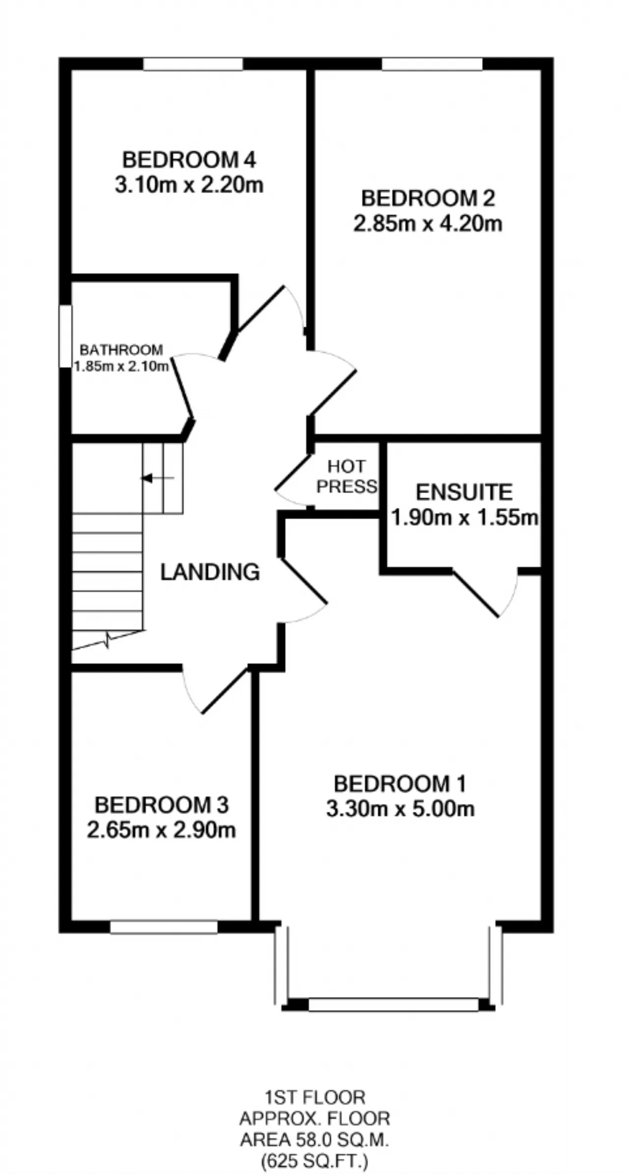 Bedroom 1 Carpet flooring, bay window, fitted wardrobes, coved ceiling.