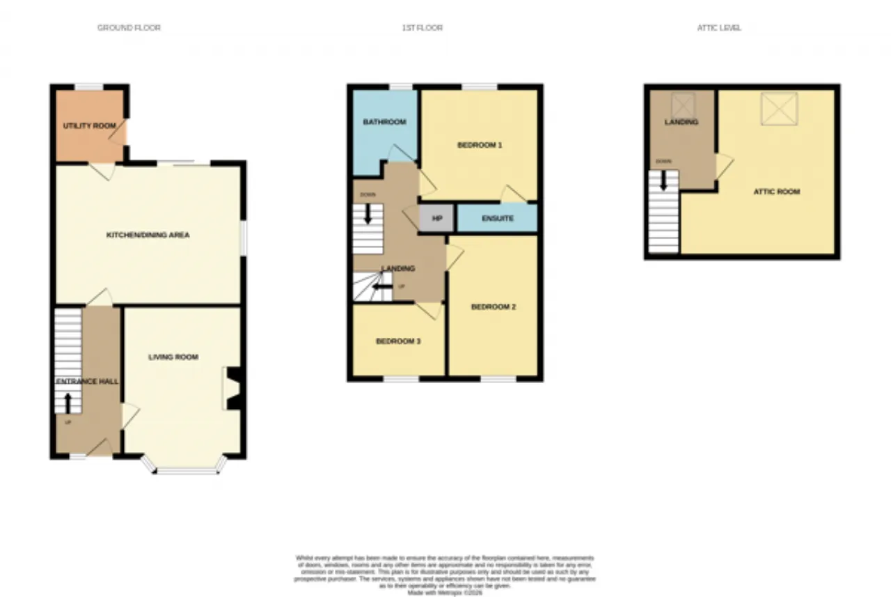 Attic room: Large, converted storage space with full staircase, landing area & separate room with timber floor, built in storage & rear skylight.