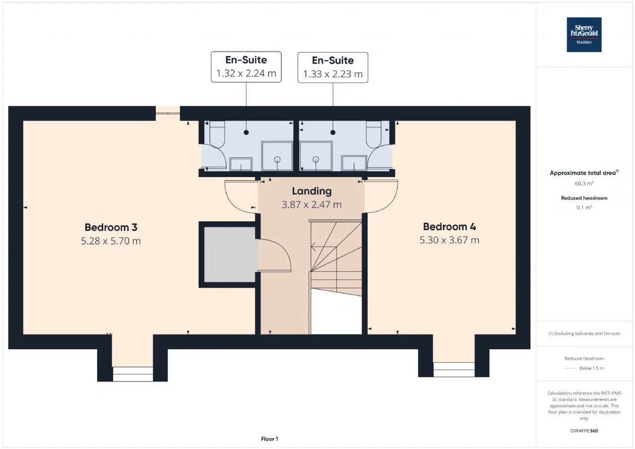 Bedroom 4 5.30m x 3.67m Rear aspect skylight, front aspect window, carpet flooring En-suite: 1.33m x 2.23m whb/wc/shower, laminate flooring