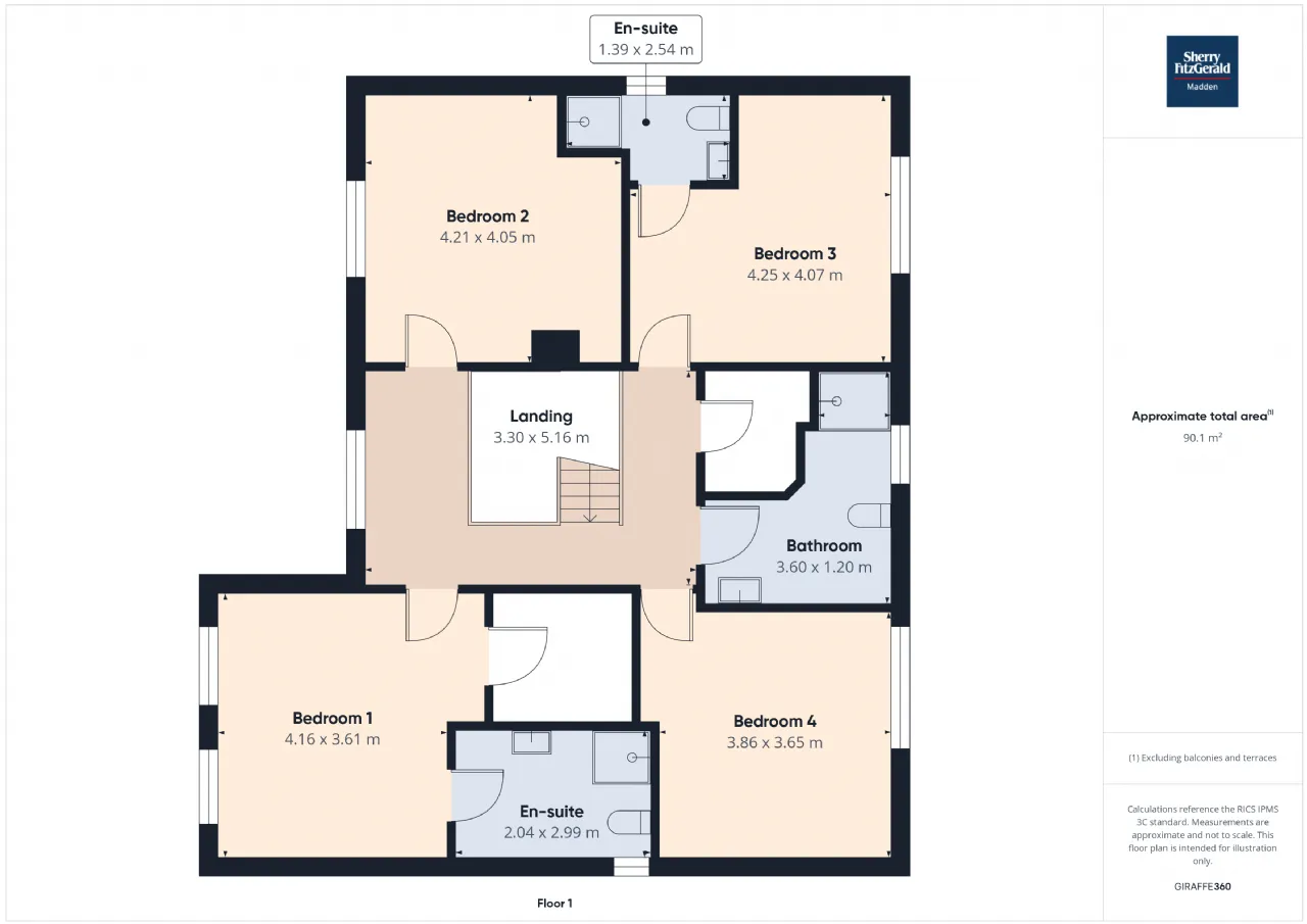 Bedroom 1 (Master) 4.16m x 3.61m Front aspect windows, walk-in wardrobe, wooden floor En-suite: 2.04m x 2.99m Side aspect window, whb/wc/electric shower, fully tiled