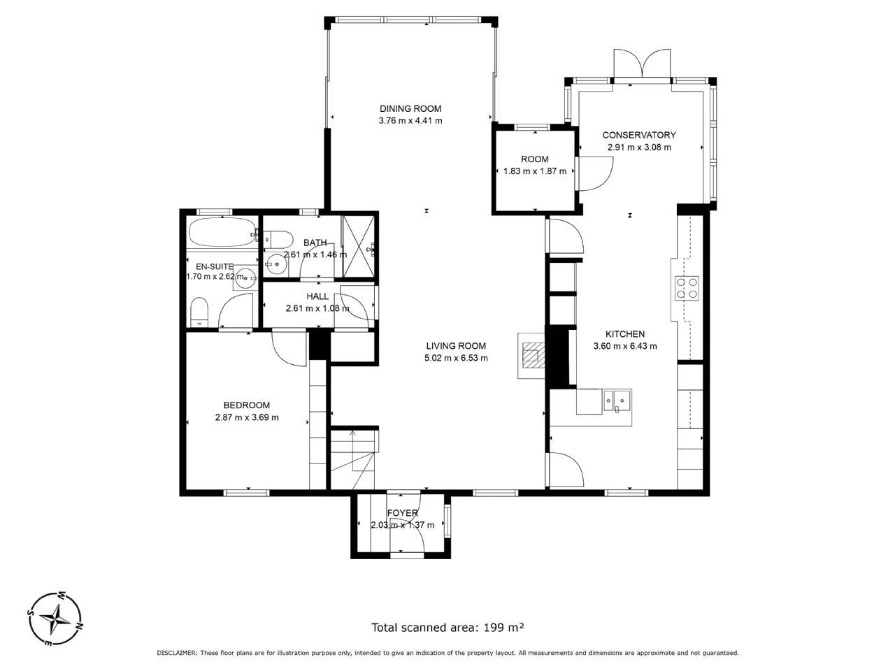 Bedroom 1 3.69 x 2.87 Fitted wardrobes, with en-suite