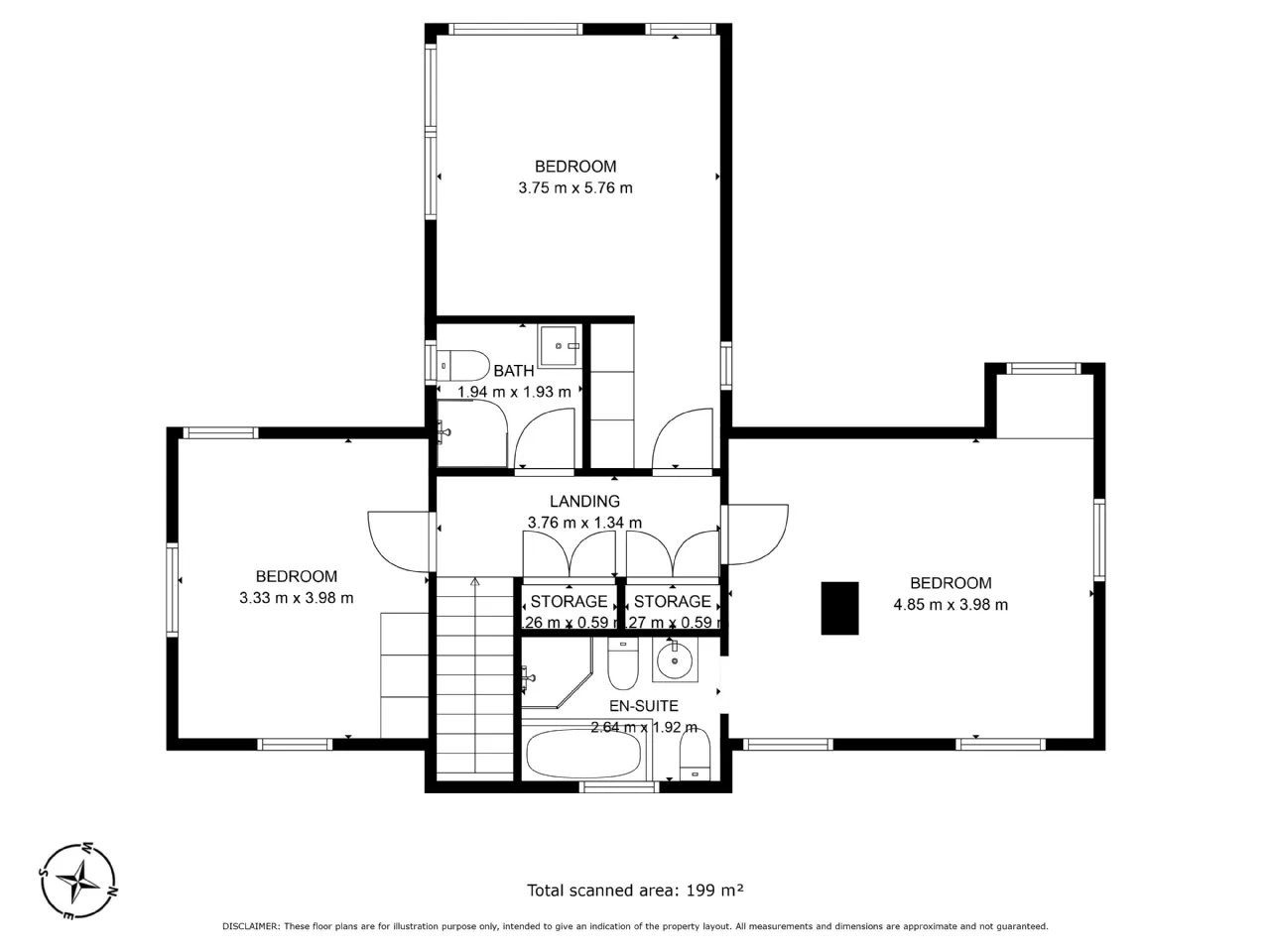 Bedroom 4 3.98 x 3.33 Gable end windows