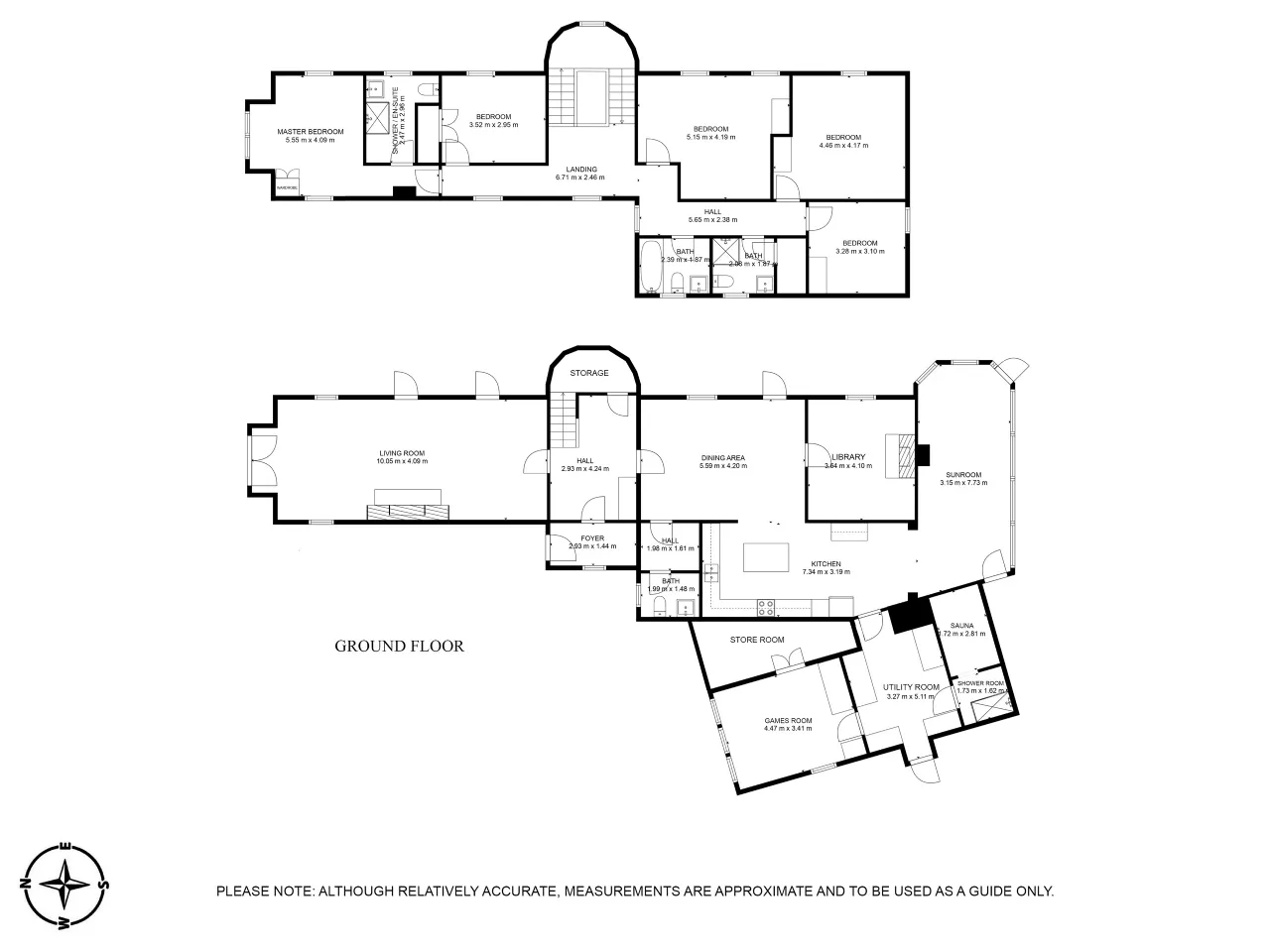 Completing the ground floor level, is a WC, a sauna and shower room, a practical utility room, that can also be conveniently accessed via a back door entrance and a dedicated games room which adds a touch of leisure and entertainment.