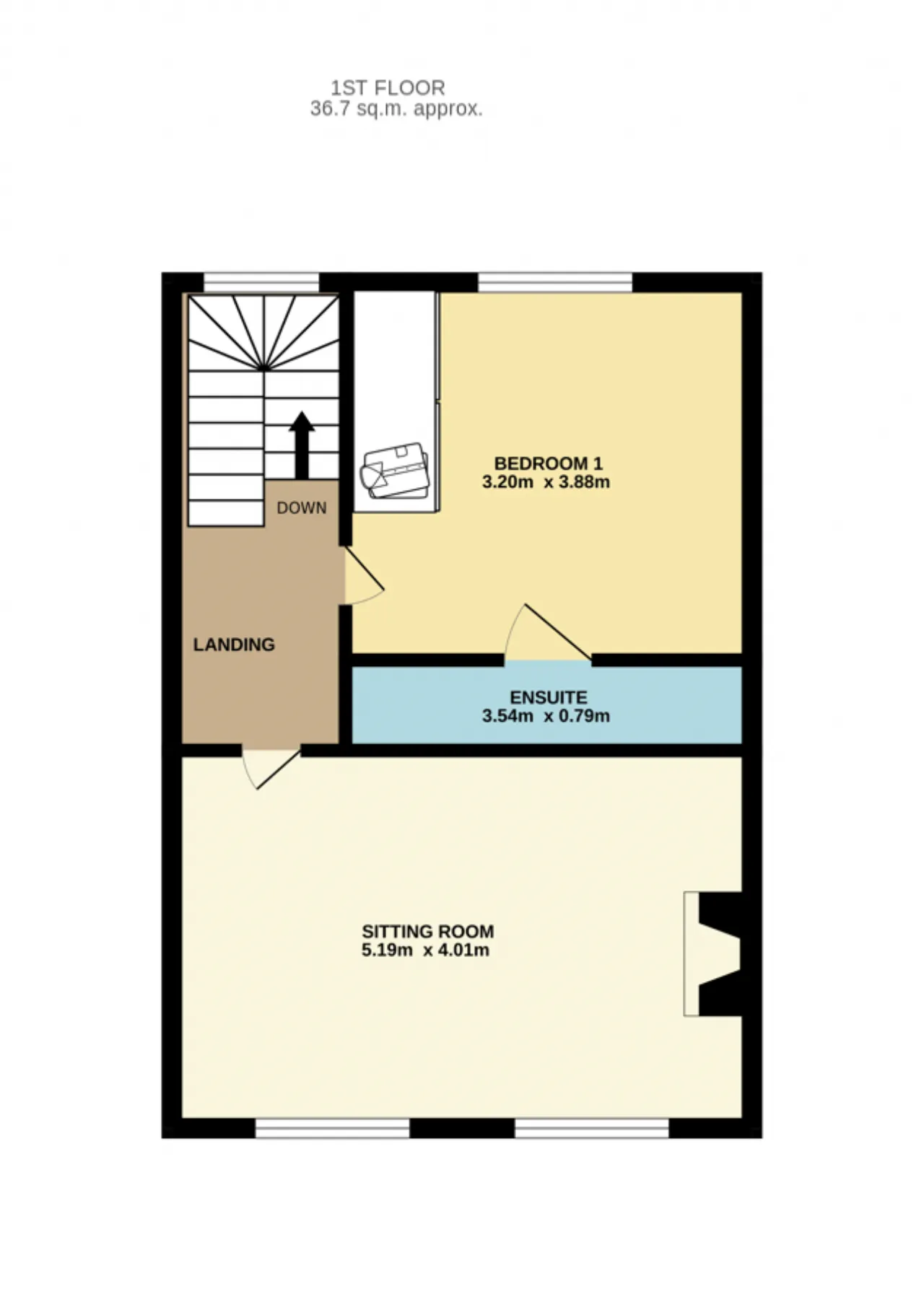 En-Suite: Tiled floor, wc, wash hand basin, electric shower, extractor fan.