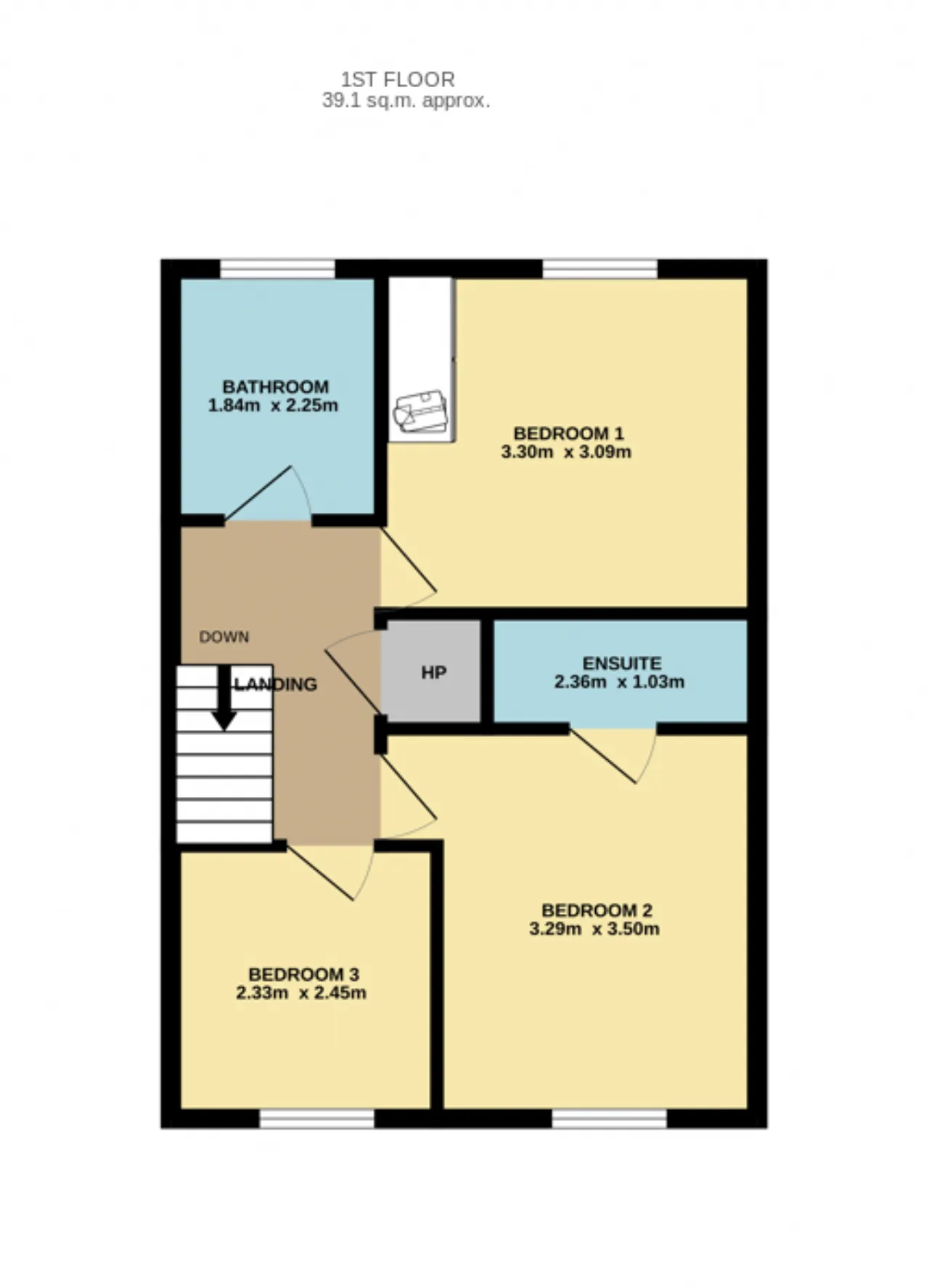 Landing: Carpet floor, shelved hotpress, stira stairs to attic space.