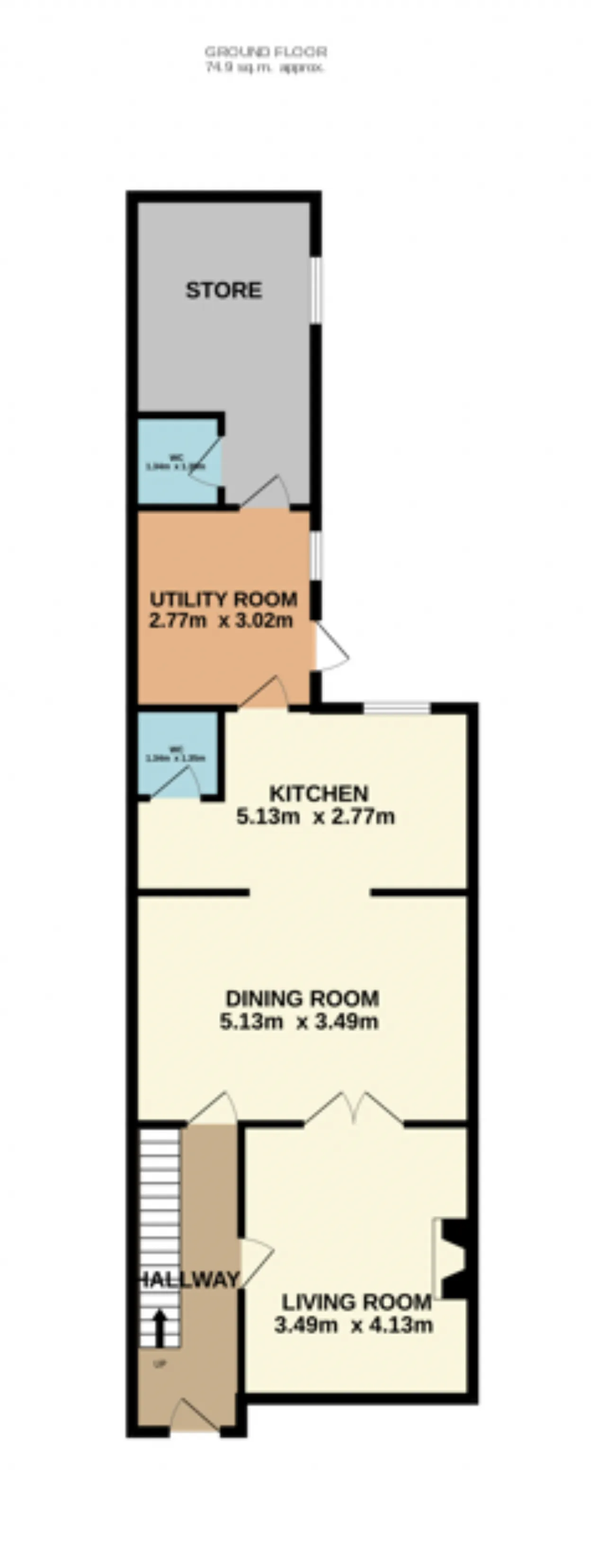WC: Fully tiled, wc, wash hand basin, window to utility.
