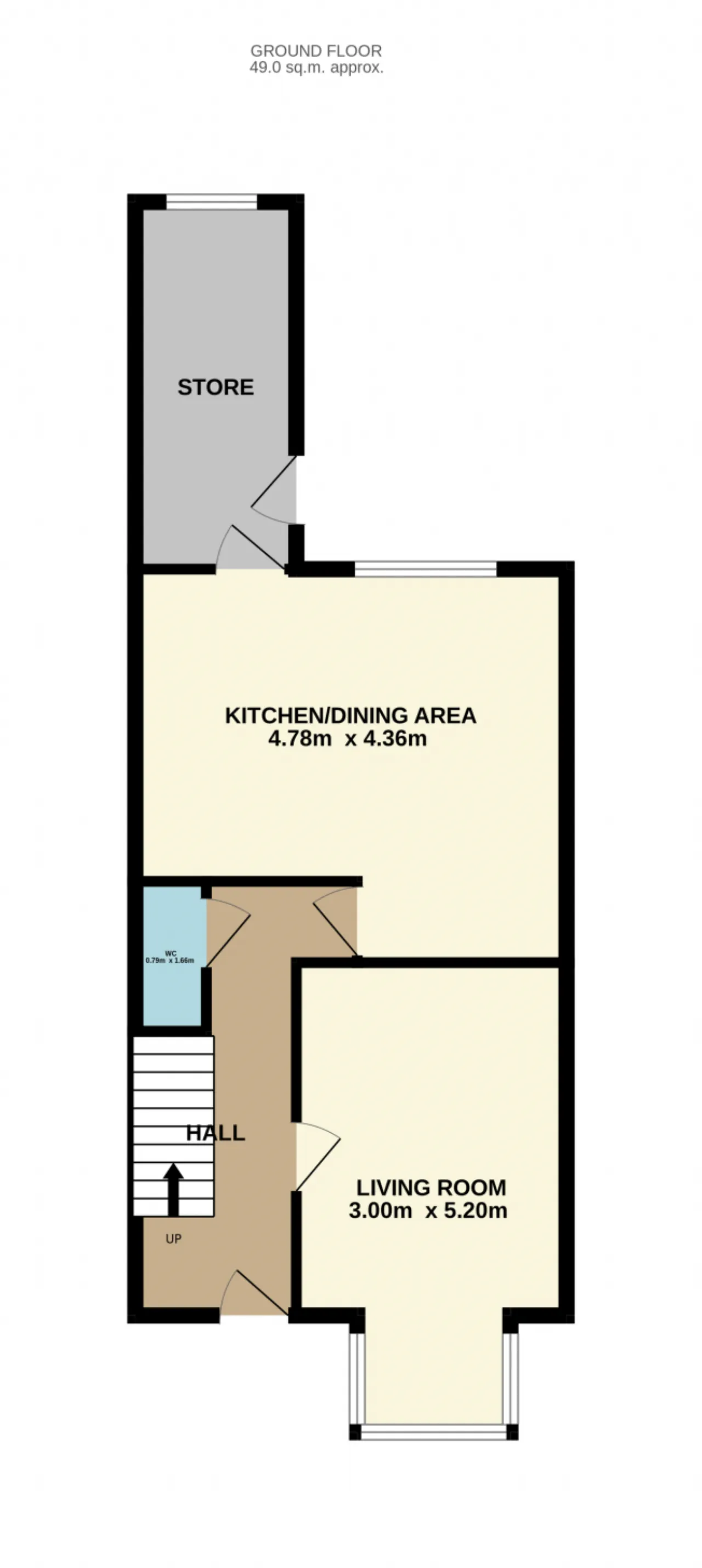 The property offers bright and spacious accommodation throughout. The ground floor comprises a welcoming living room featuring a front-facing bay window and a solid fuel inset stove, a guest WC, and a generously sized kitchen/dining area with a large window overlooking the private rear garden. Upstairs, there are three well-proportioned bedrooms, two of which benefit from fitted wardrobes, along with a main family bathroom.