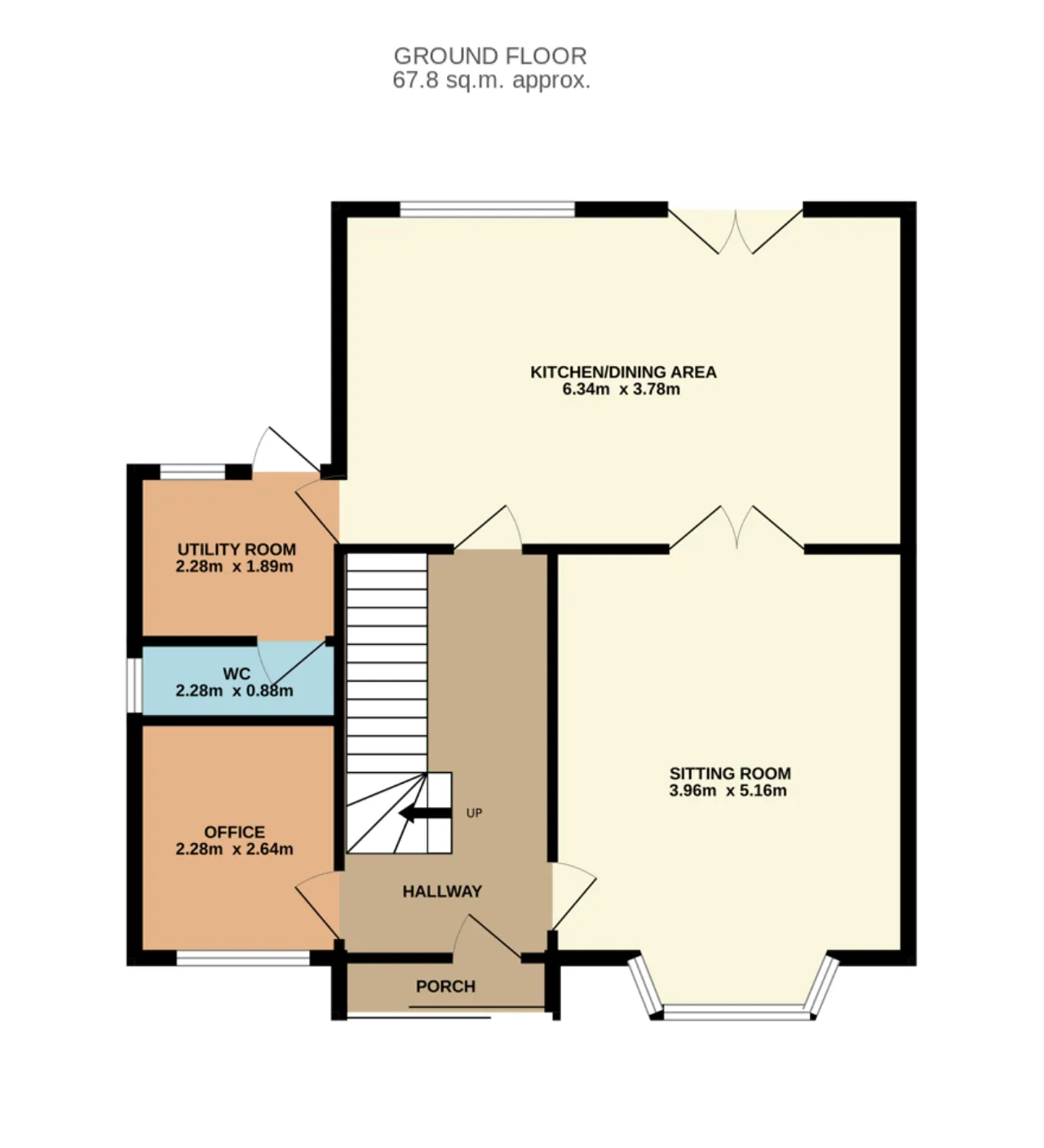 The porch leads into a spacious entrance hall with under stairs storage. The main living room to the right at the front of the house is bright and spacious and to the left a study / home office. To the rear, the open plan kitchen / dining which comprises of floor and wall kitchen units with ample storage and French doors accessing the rear garden. The utility is plumbed for washing machine and also has further wall and floor units for storage and access to the rear garden. The downstairs wc off the utility completes the ground floor accommodation. Upstairs there are four bedrooms, one of which is ensuite, the main bathroom and hot press. Stira access to attic.