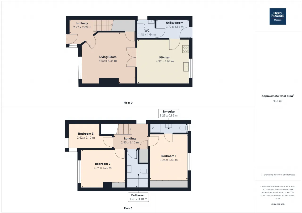 Bedroom 1 3.24m x 3.83m Rear aspect window, built-in storage, wooden flooring -En-suite: 3.25m x 0.86m - Rear aspect window, whb/wc/electric shower, fully tiled