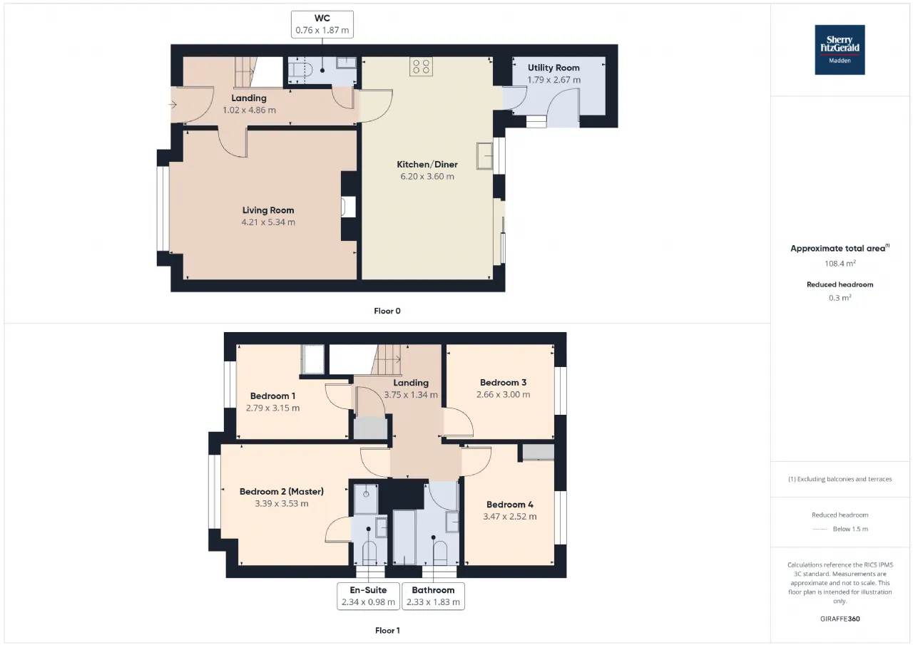 Bedroom 2 - Master 3.39m x 3.53m Front aspect window, fitted wardrobe, carpet flooring - En-suite - 0.98m x 2.34m - Shower, whb, wc, floor to ceiling tiling