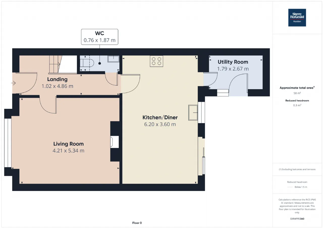 Utility Room 1.79m x 2.67m Door to rear garden, fitted wall & base units, tile flooring