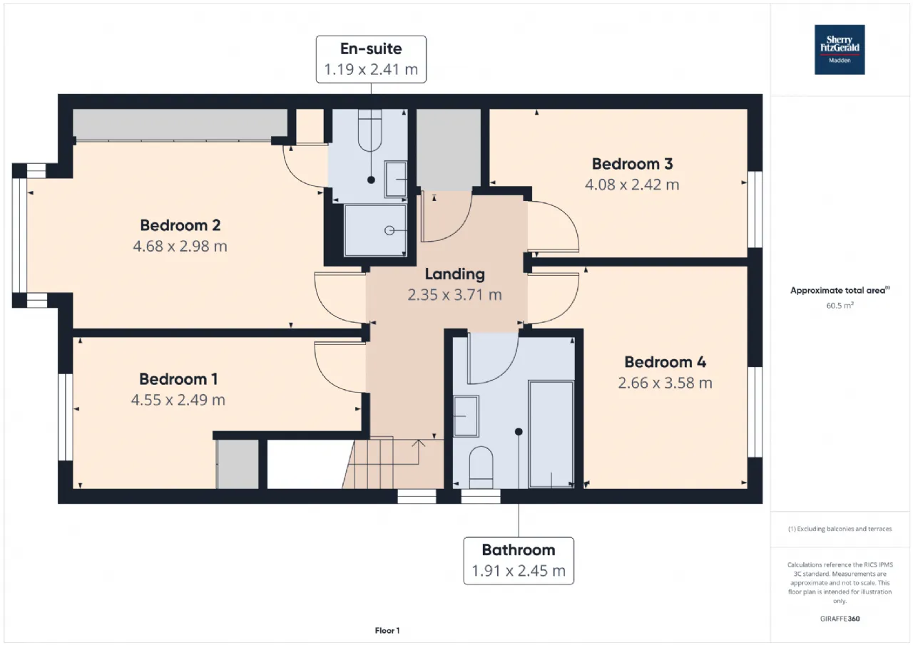 Bedroom 2 4.68m x 2.98m Front aspect bay window, fitted storage, carpet flooring En-suite: 1.19m x 2.41m whb/wc/electric shower, fully tiled