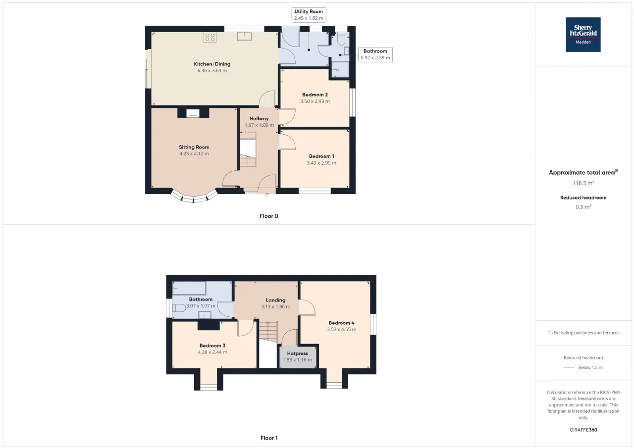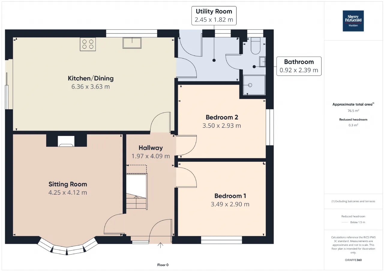Bedroom 1 3.49m x 2.90m Front aspect window, wooden flooring