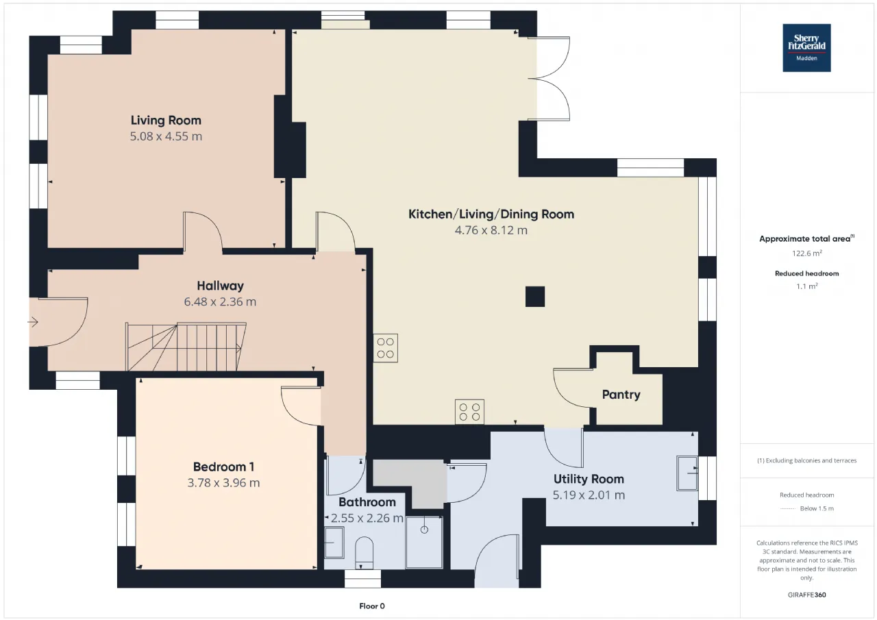 Utility Room 5.19m x 2.01m Rear aspect window and door, walk-in hotpress/airing cupboard, under floor heating, floor tiled