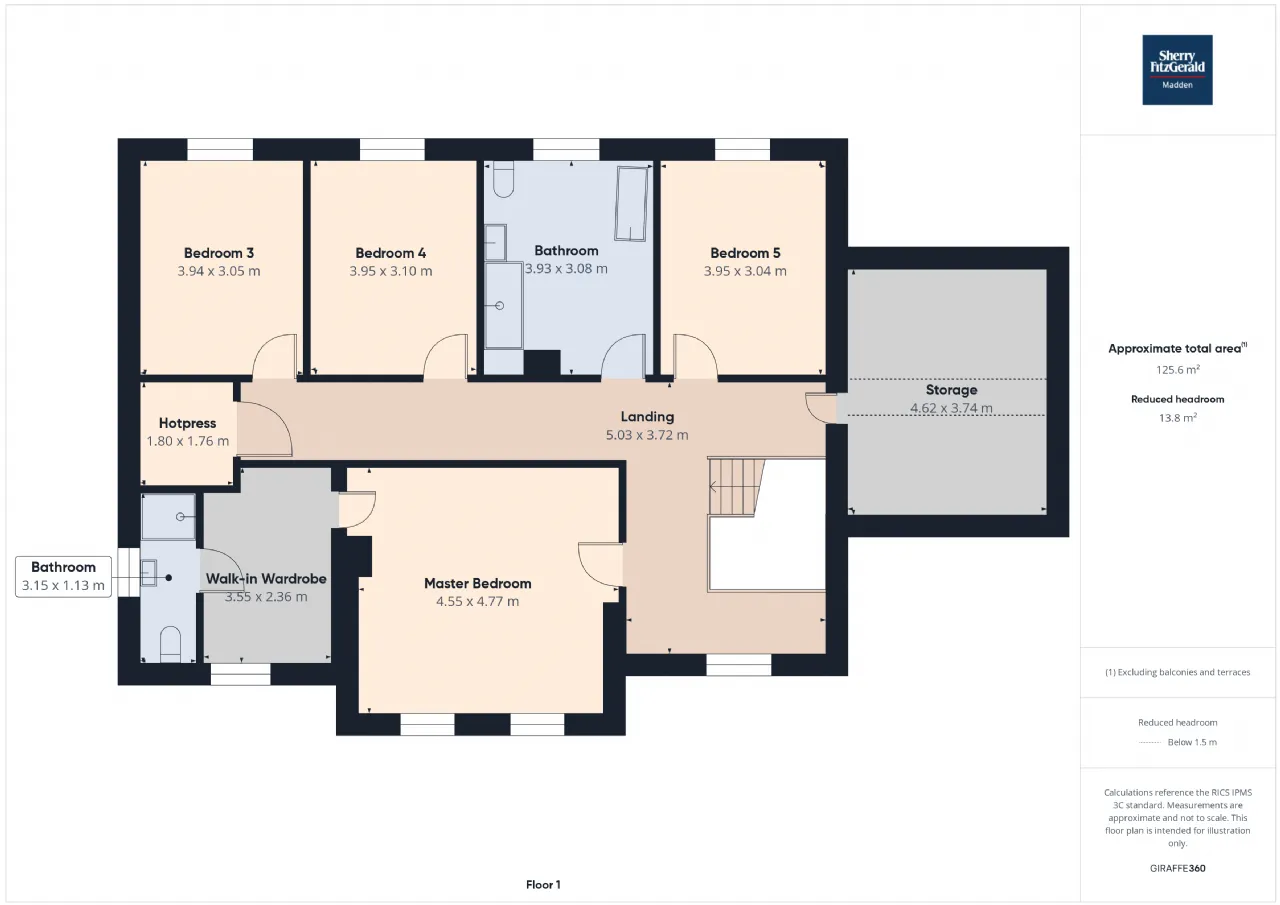 Landing 5.03m x 3.72m Front aspect window, attaic storage space, carpet flooring - Hotpress/airing cupboard: 1.80m x 1.76m - walk-in wardrobe (fully shelved)