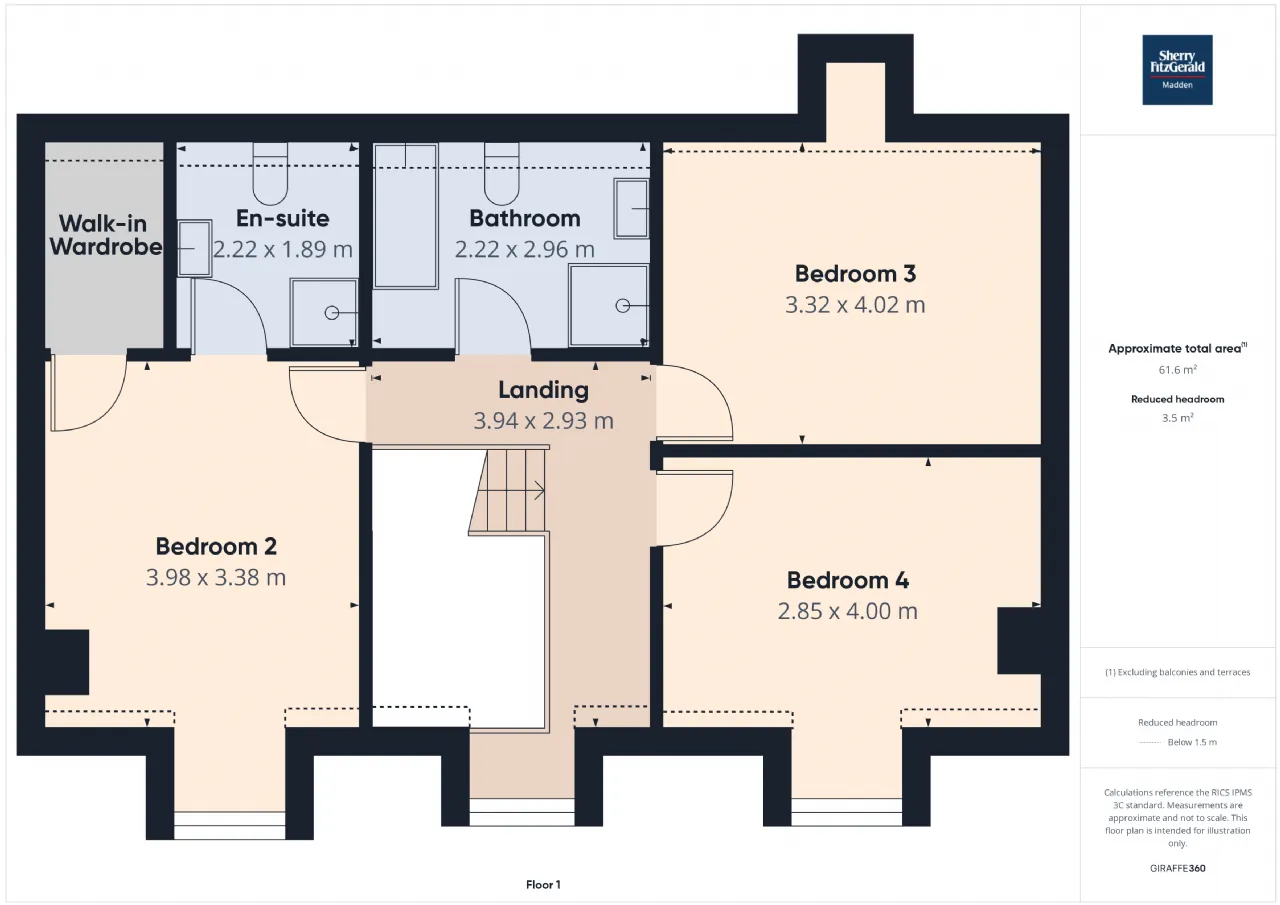 Bedroom 2 3.98m x 3.38m Front aspect window, walk-in wardrobe, carpet flooring - En-Suite: 2.22m x 1.89m - Skylight, whb/wc/electric shower, fully tiled