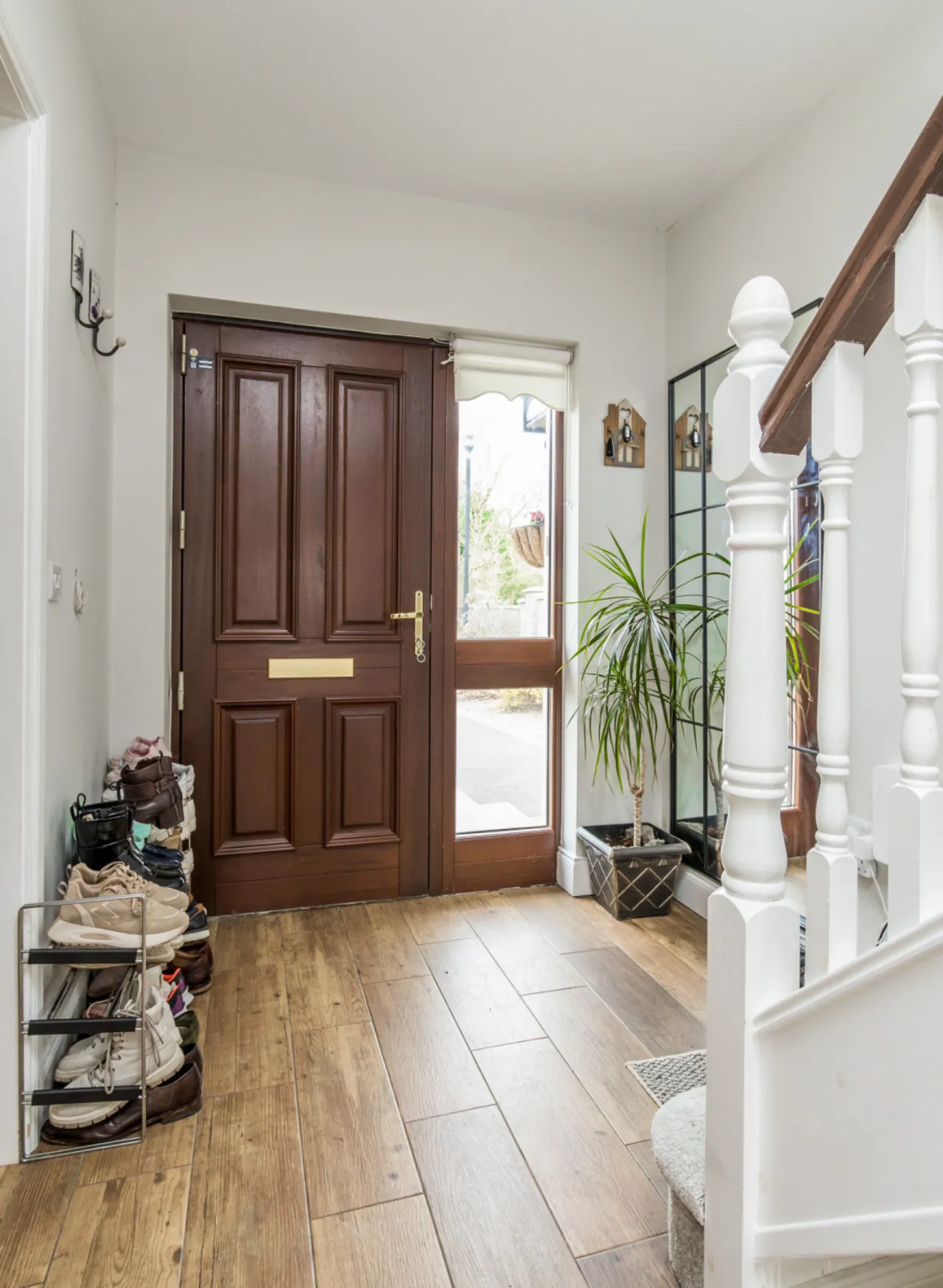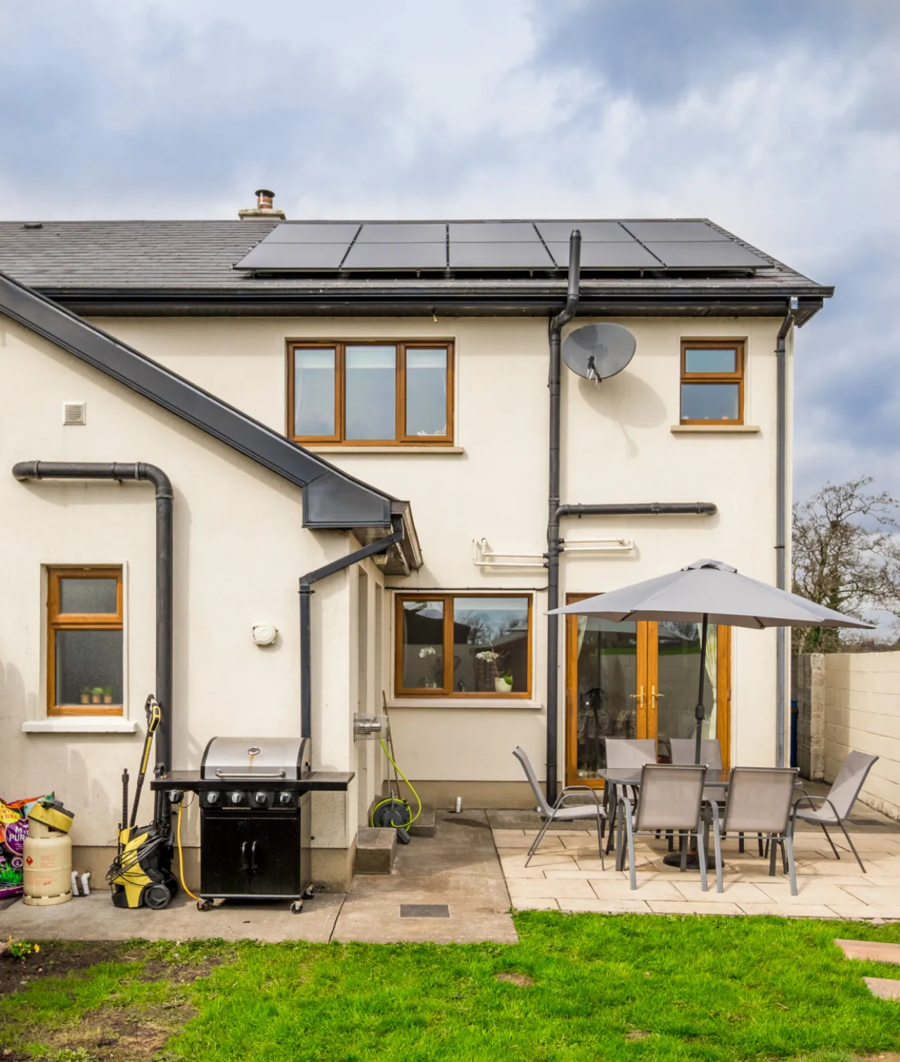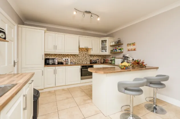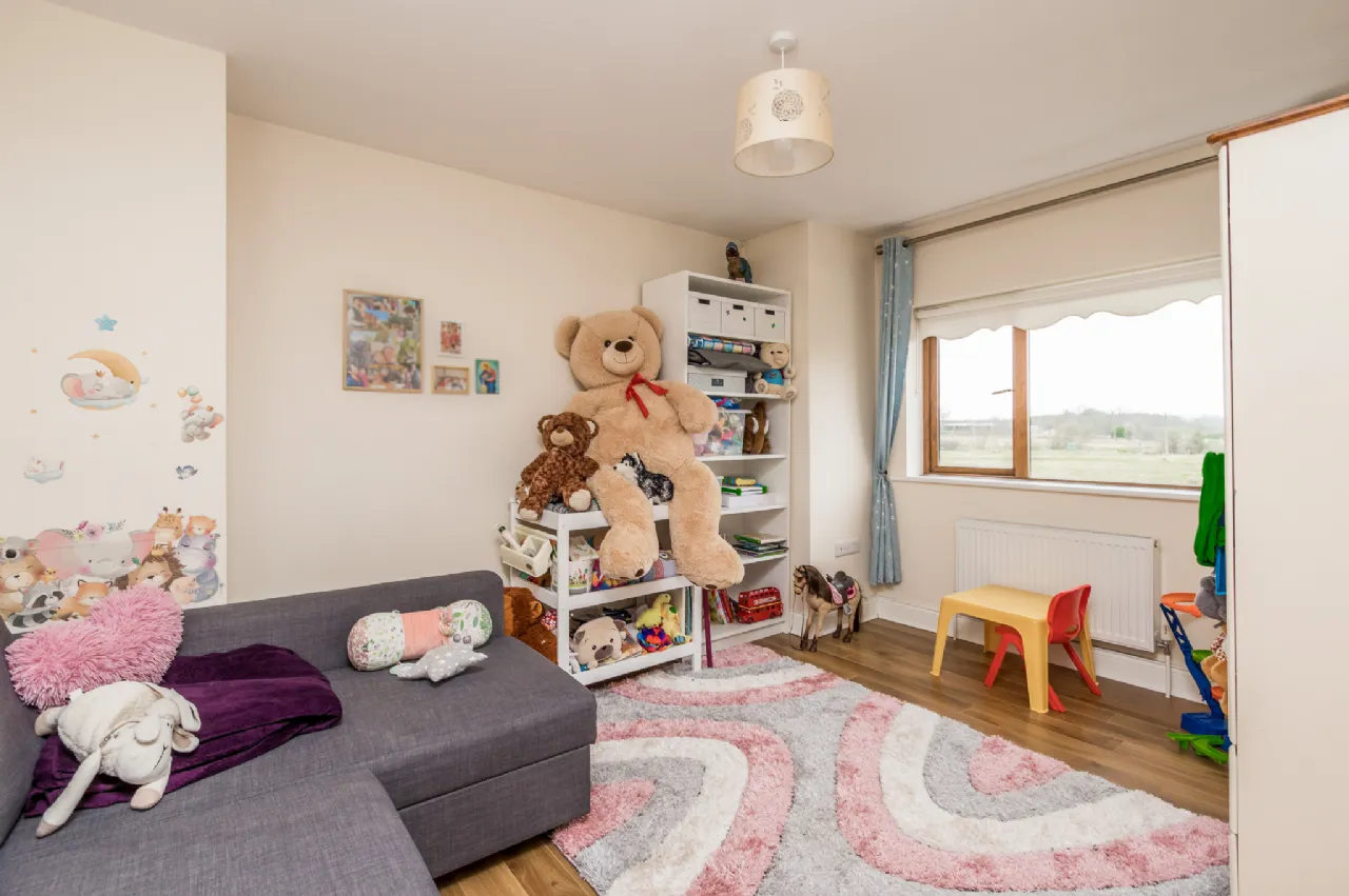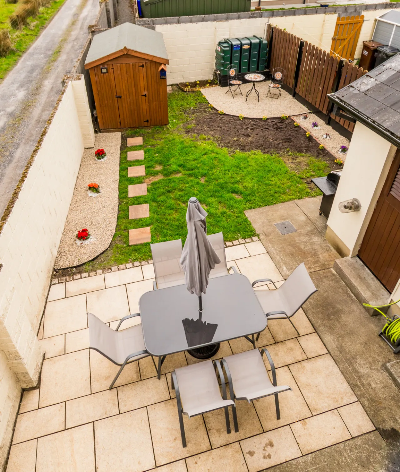 The house benefits from modern PVC windows and doors, oil-fired central heating, and an oil tank situated at the rear of the property. The attic space also offers potential for further improvements. A hot press with an insulated cylinder enhances the home’s energy efficiency.