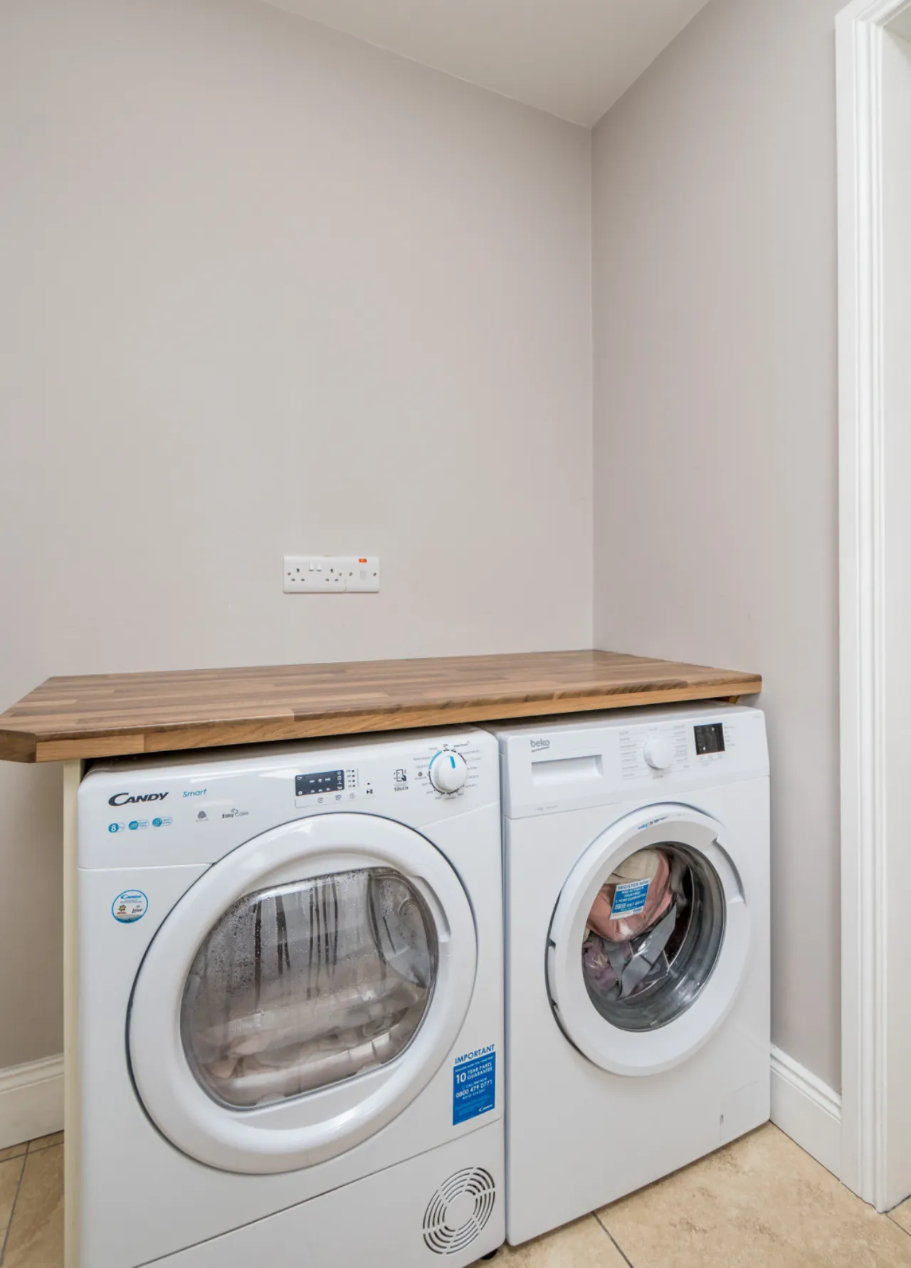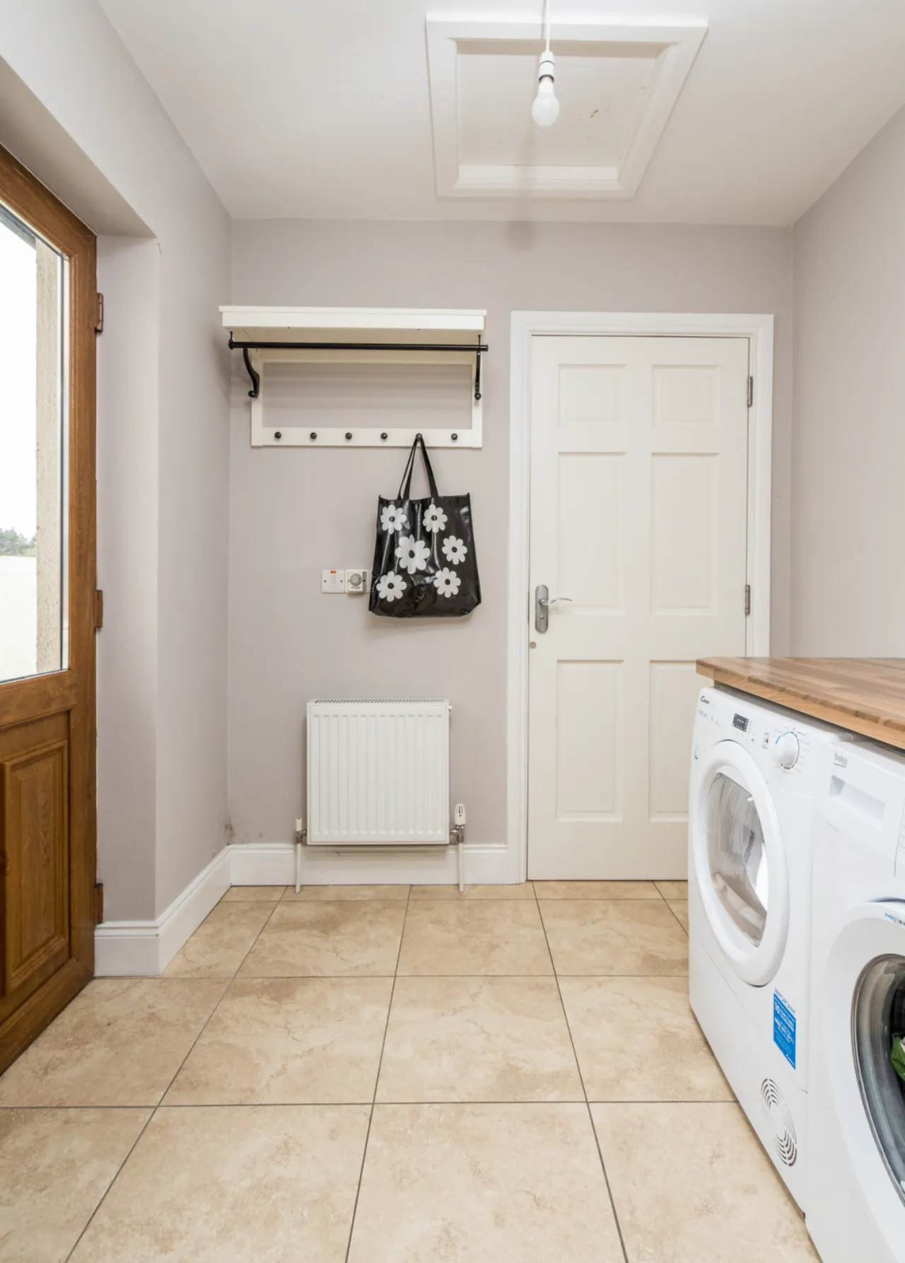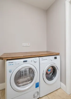 Utility Room 1.96 x 2.09m Tiled floor, Washing machine and tumble dryer PVC back door leading to outside. WC off.