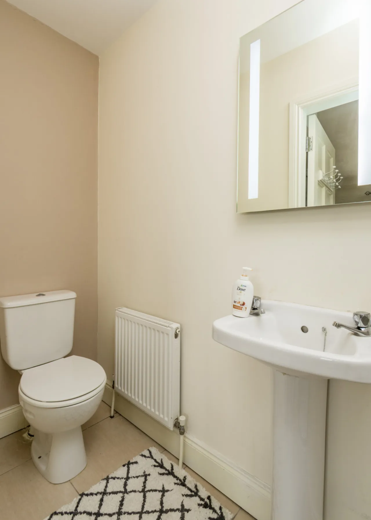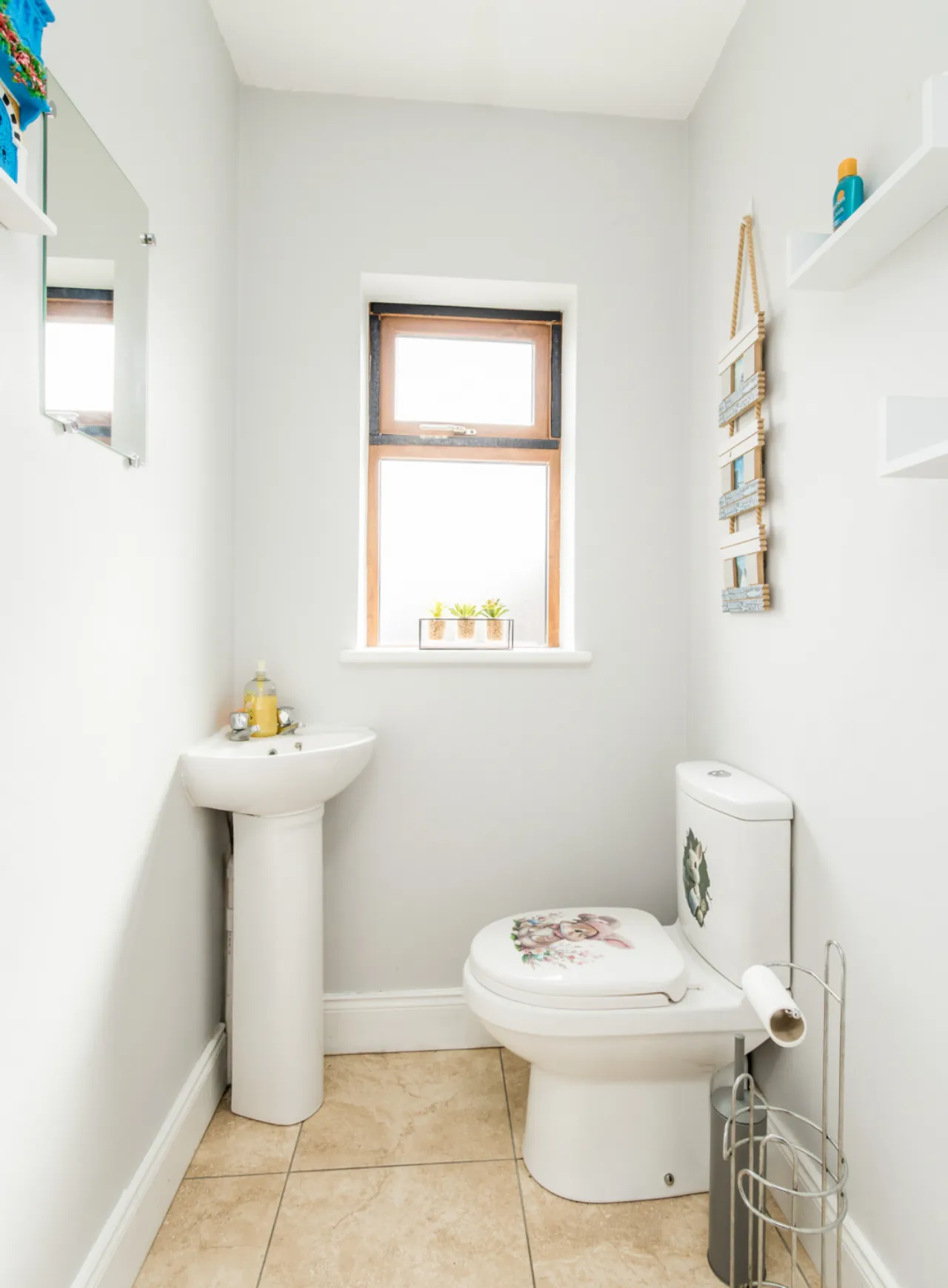Downstairs WC 1.48 x 1.18m Tiled floor Fitted with WC and WHB