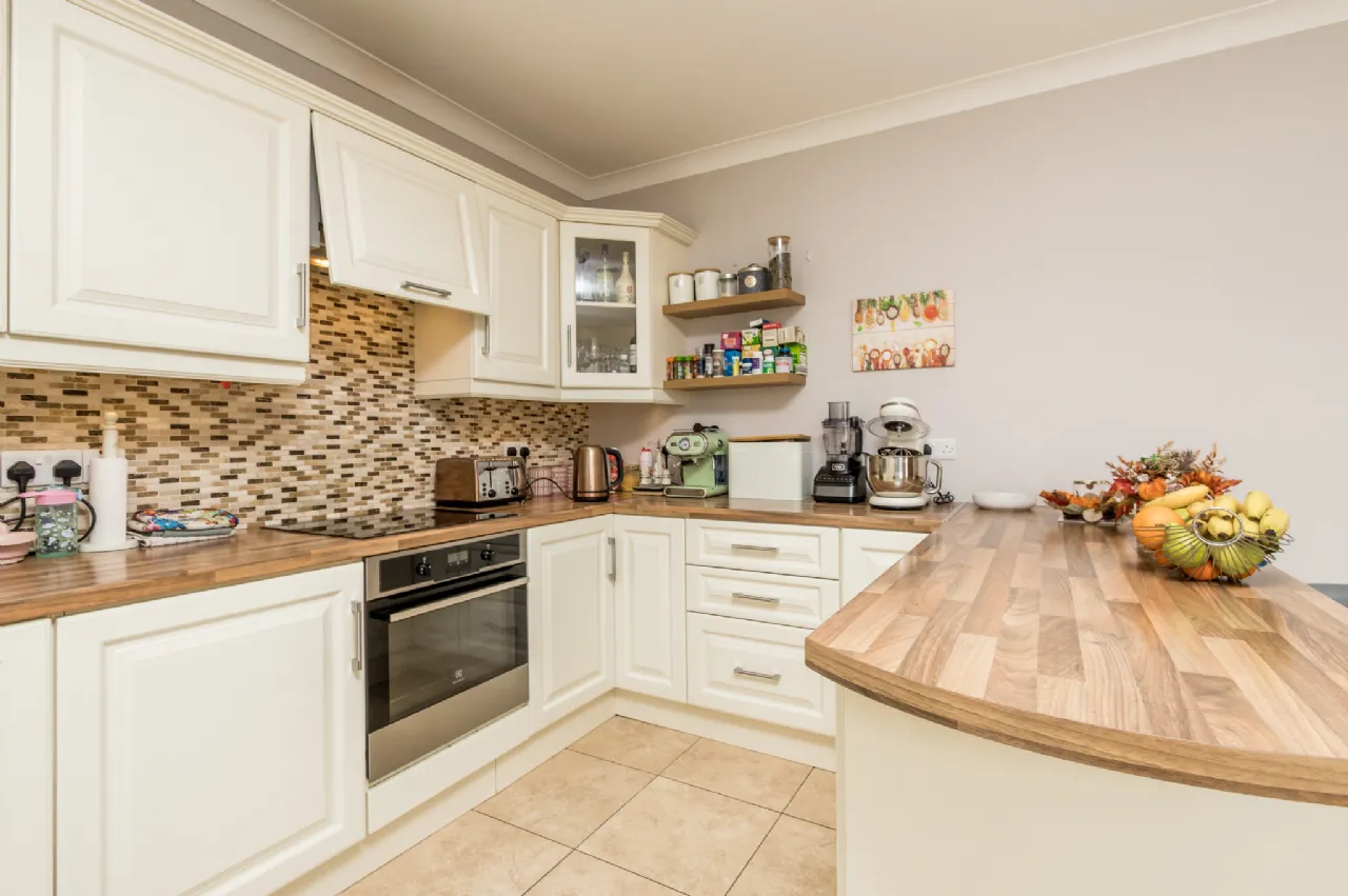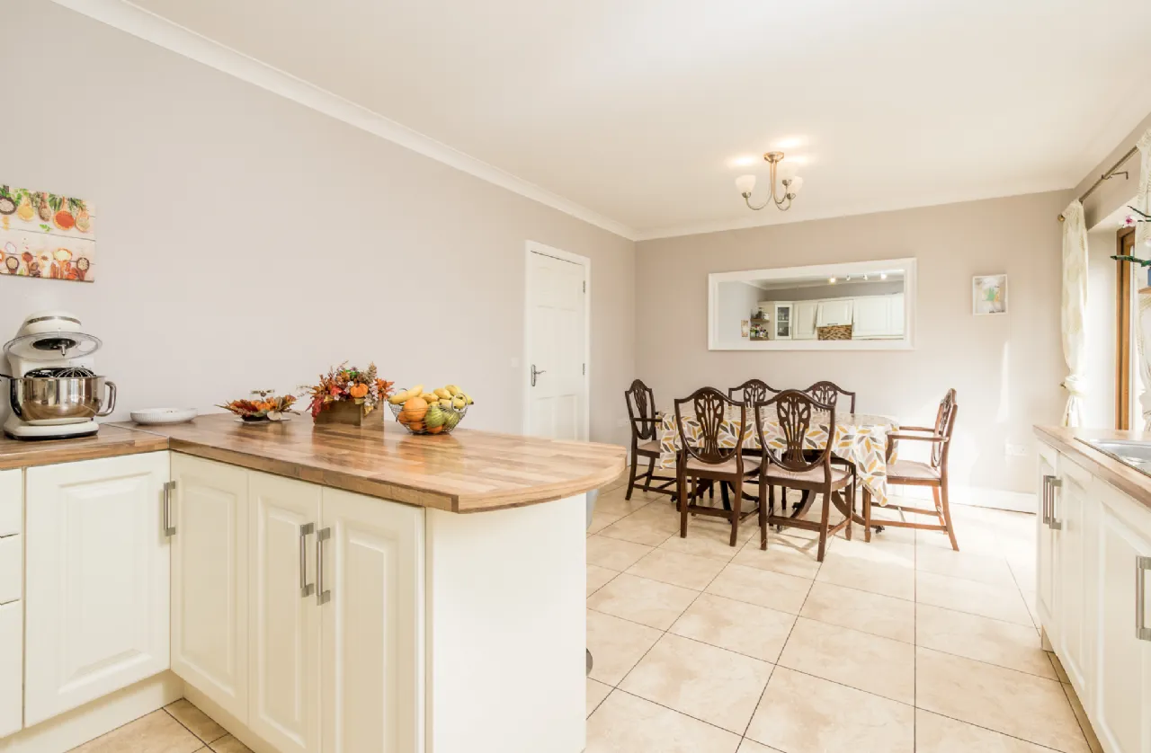 Kitchen Dining Room 3.68 x 6.42m Kitchen Dining Room is east facing catches the morning sun. French doors to rear garden. Tiled floor. Coving. Breakfast bar/island Built in kitchen units with integrated fridge/freezer and dishwasher oven and hob fitted also. Door leading to utility.