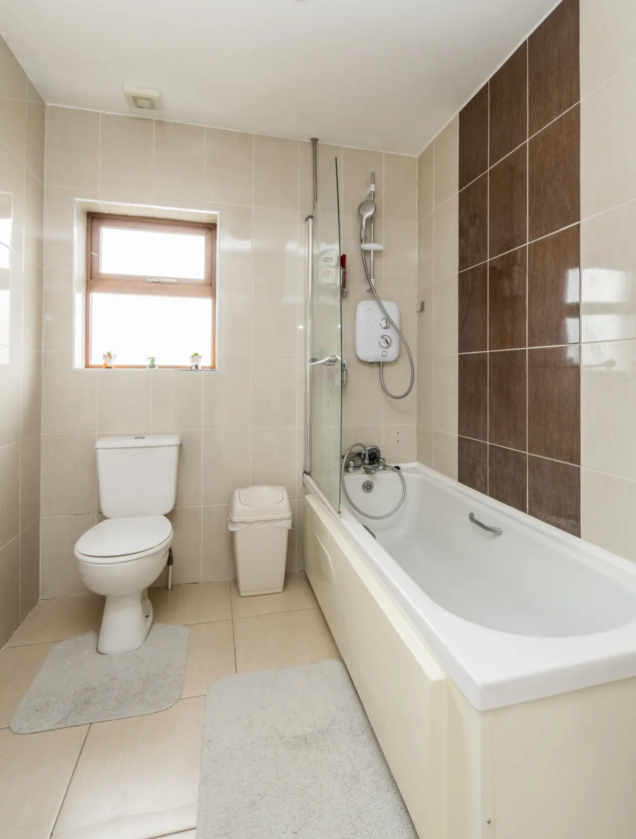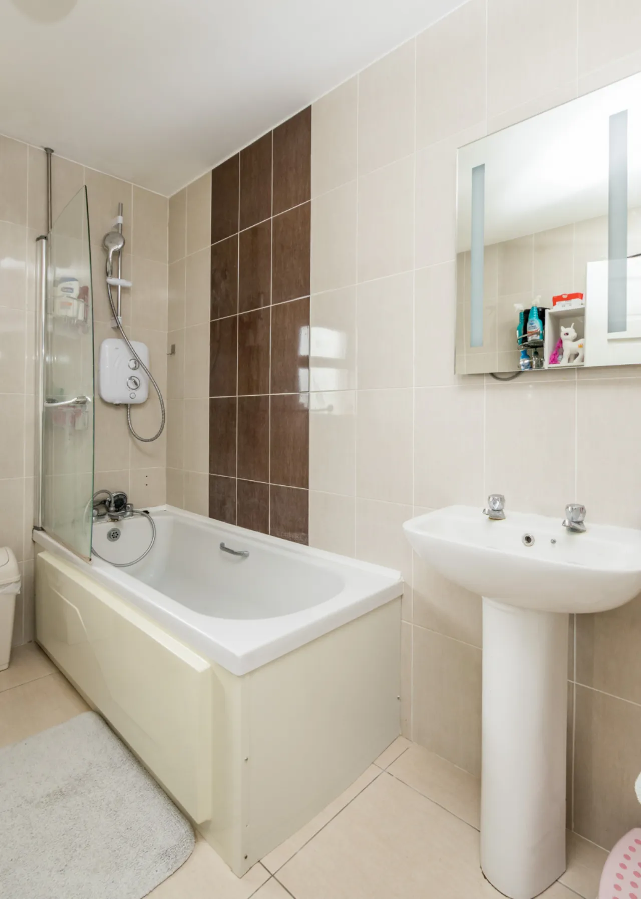 Bathroom 2.73 x 1.97m Fully tiled floor to ceiling. Fitted with WC WHB Bath with mixer Electric shower
