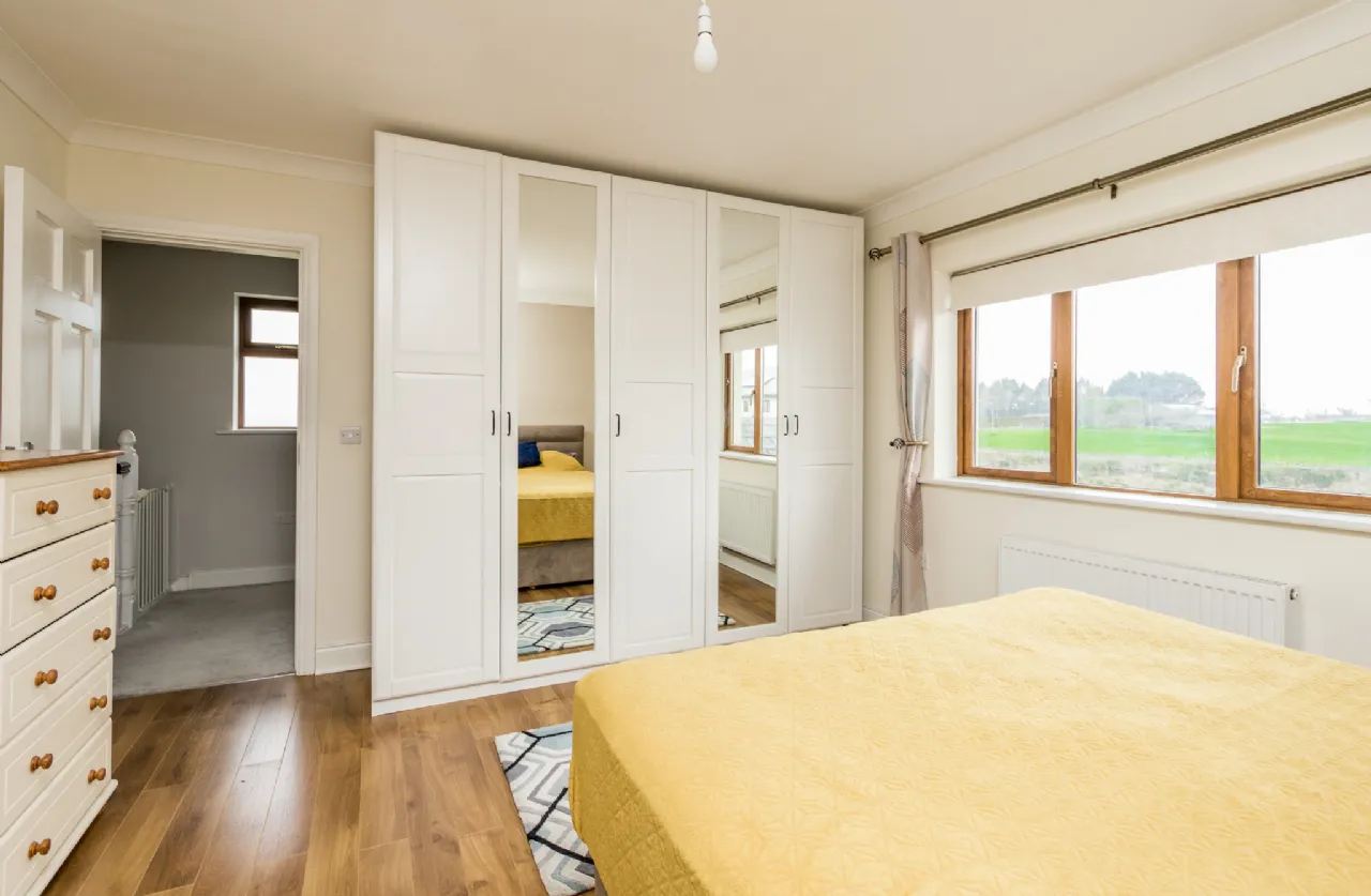 Master Bedroom 3.68 x 4.46m Timber floor Double bed size Bespoke wardrobes fitted