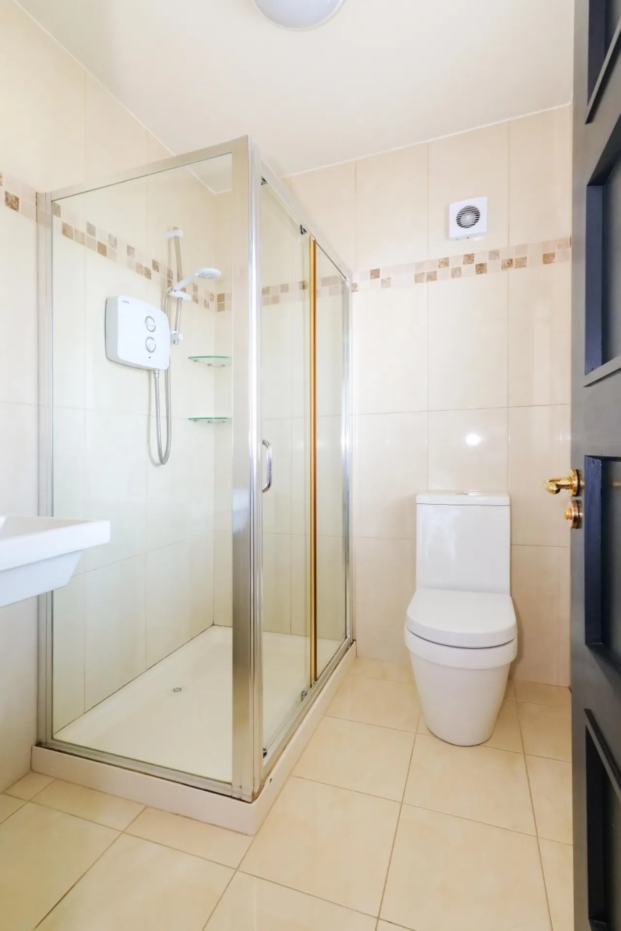En-Suite: Fully tiled walls and floor, wc, wash hand basin, large shower unit with Triton electric shower unit, heated towel rail, wall mirror and light, front aspect window.