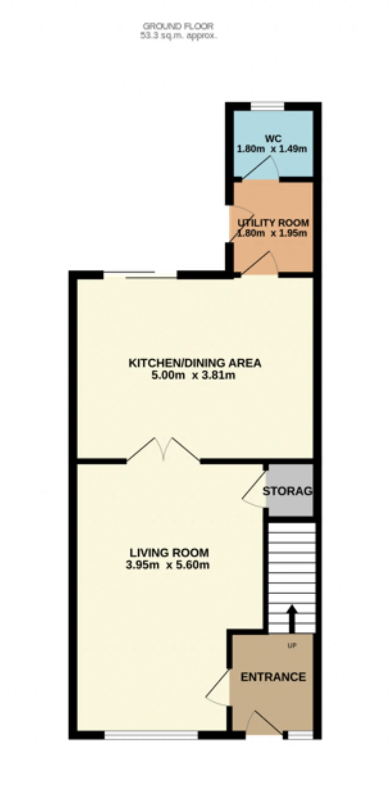 Kitchen Dining Room: Open plan space directly off south facing rear patio and garden. Tiled floor, recently installed fitted kitchen with breakfast bar, integrated oven & hob, plumbed for dishwasher.