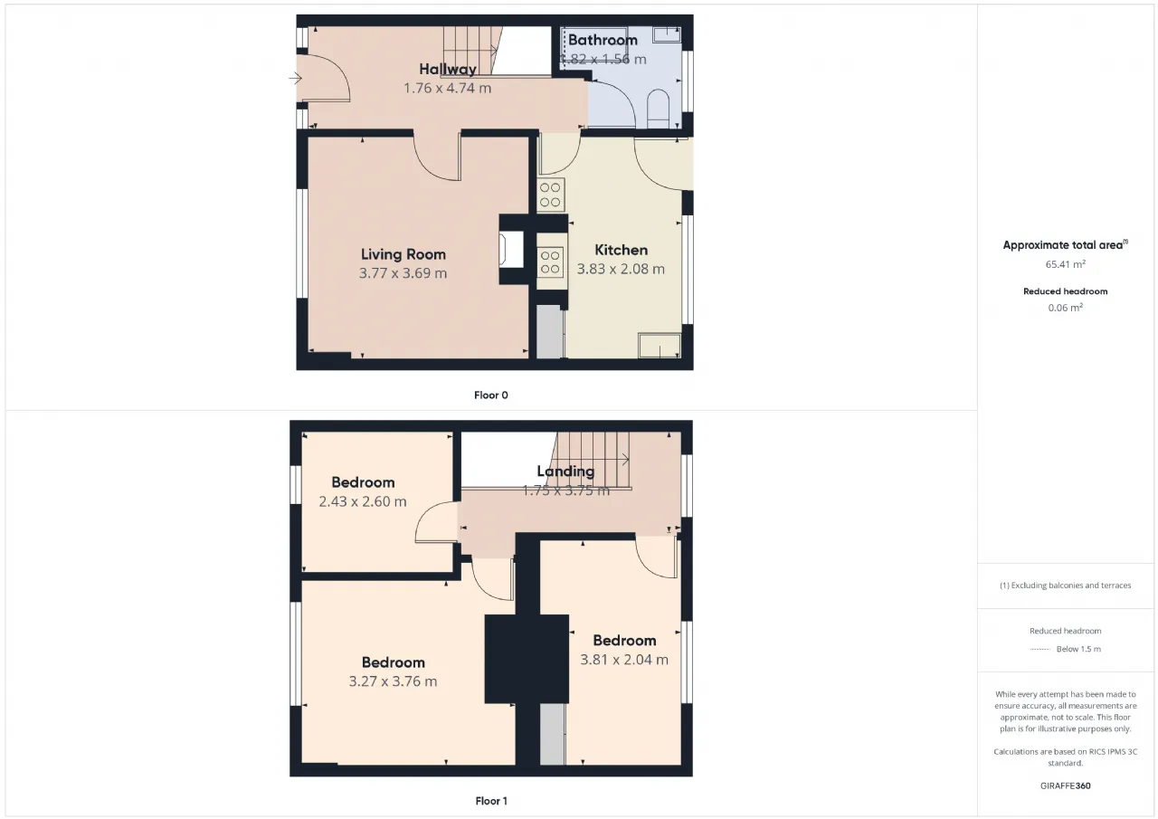 Landing 1.75m x 3.75m Carpet flooring, rear aspect window.