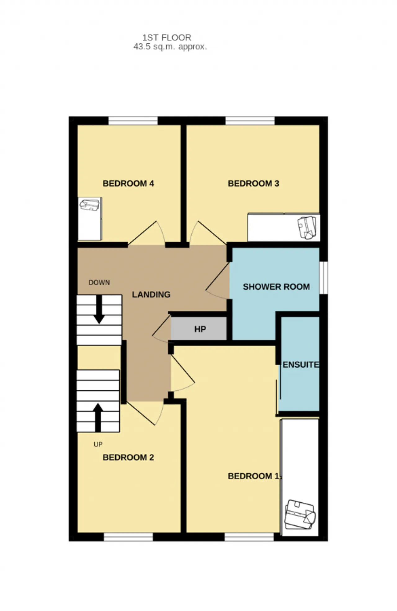 Upon entering, a bright and welcoming hallway leads to a spacious living room at the front of the house, while to the rear lies a light-filled open-plan kitchen/dining area. The ground floor also includes a utility room and a guest wc tucked neatly under the stairs. Upstairs, the property offers four well-proportioned bedrooms, one of which features an ensuite bathroom. The main bathroom serves the remaining bedrooms, while one bedroom includes access to a converted attic space, offering additional flexible living or storage space.