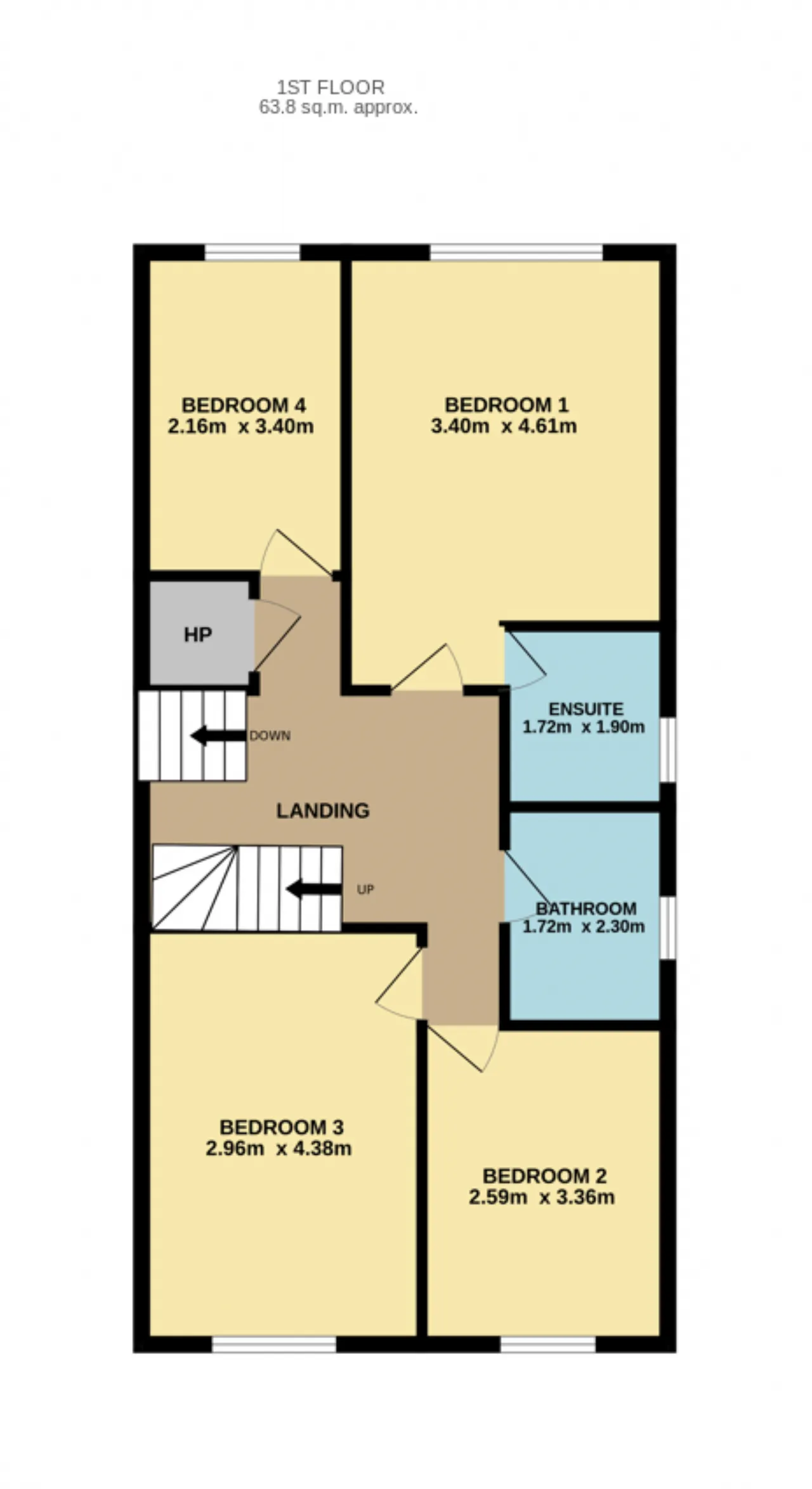 Bedroom 2: Laminate timber floor, fitted wardrobe, front aspect window.