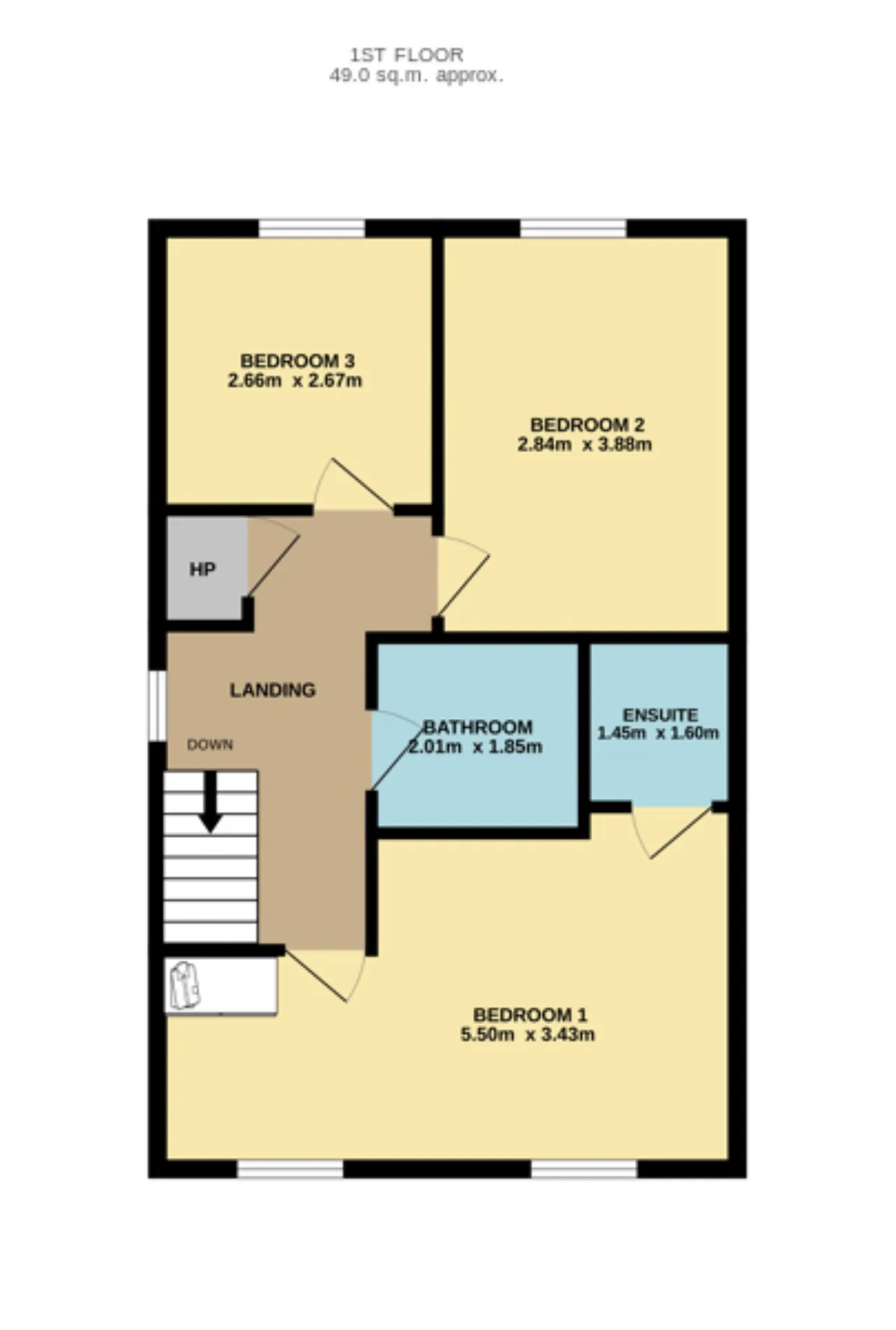 Bedroom 1: Laminate timber floor, built in wardrobes, 2 front aspect windows.