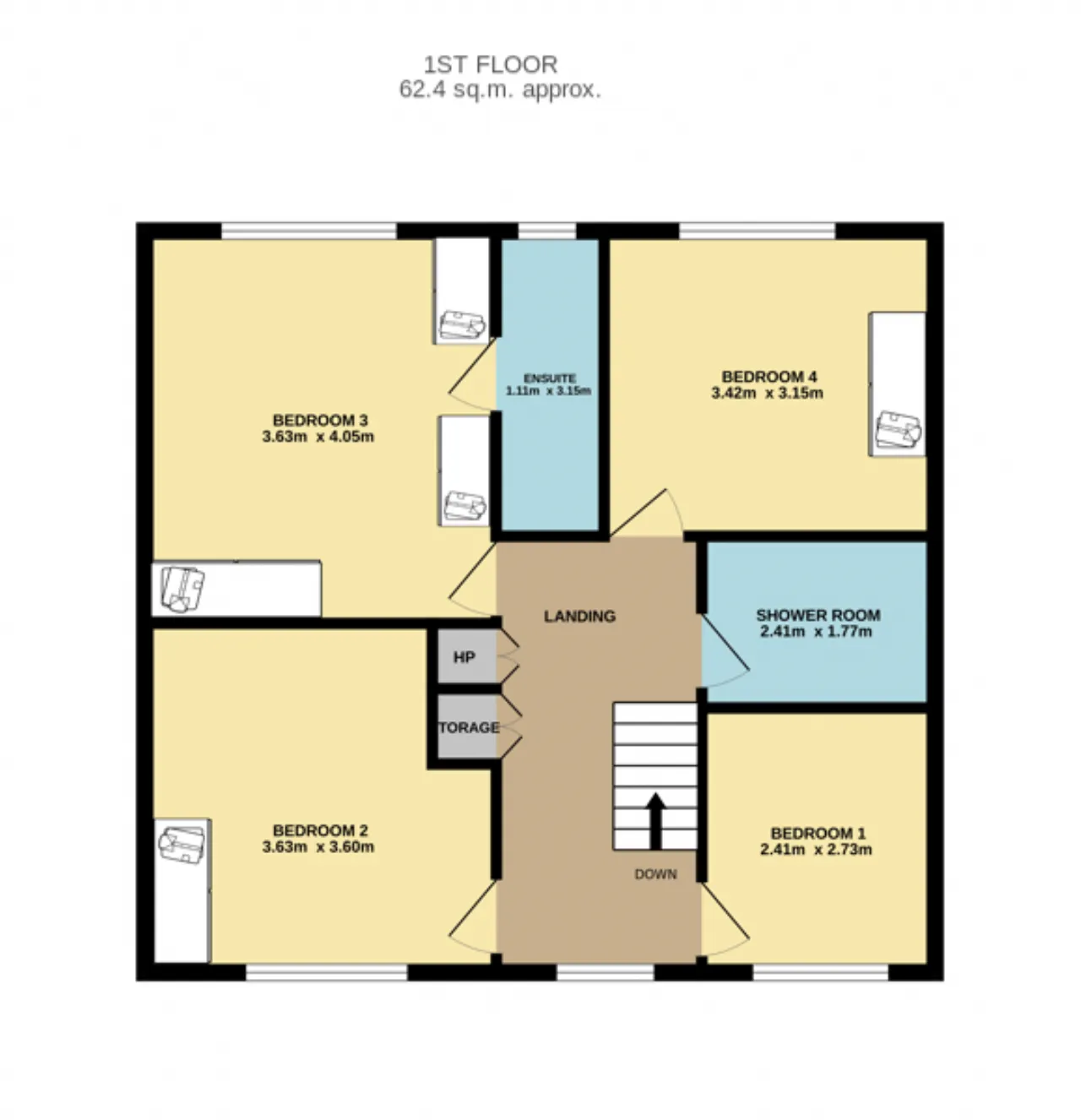 Bedroom 4: Laminate timber floor, built in wardrobe and shelving.