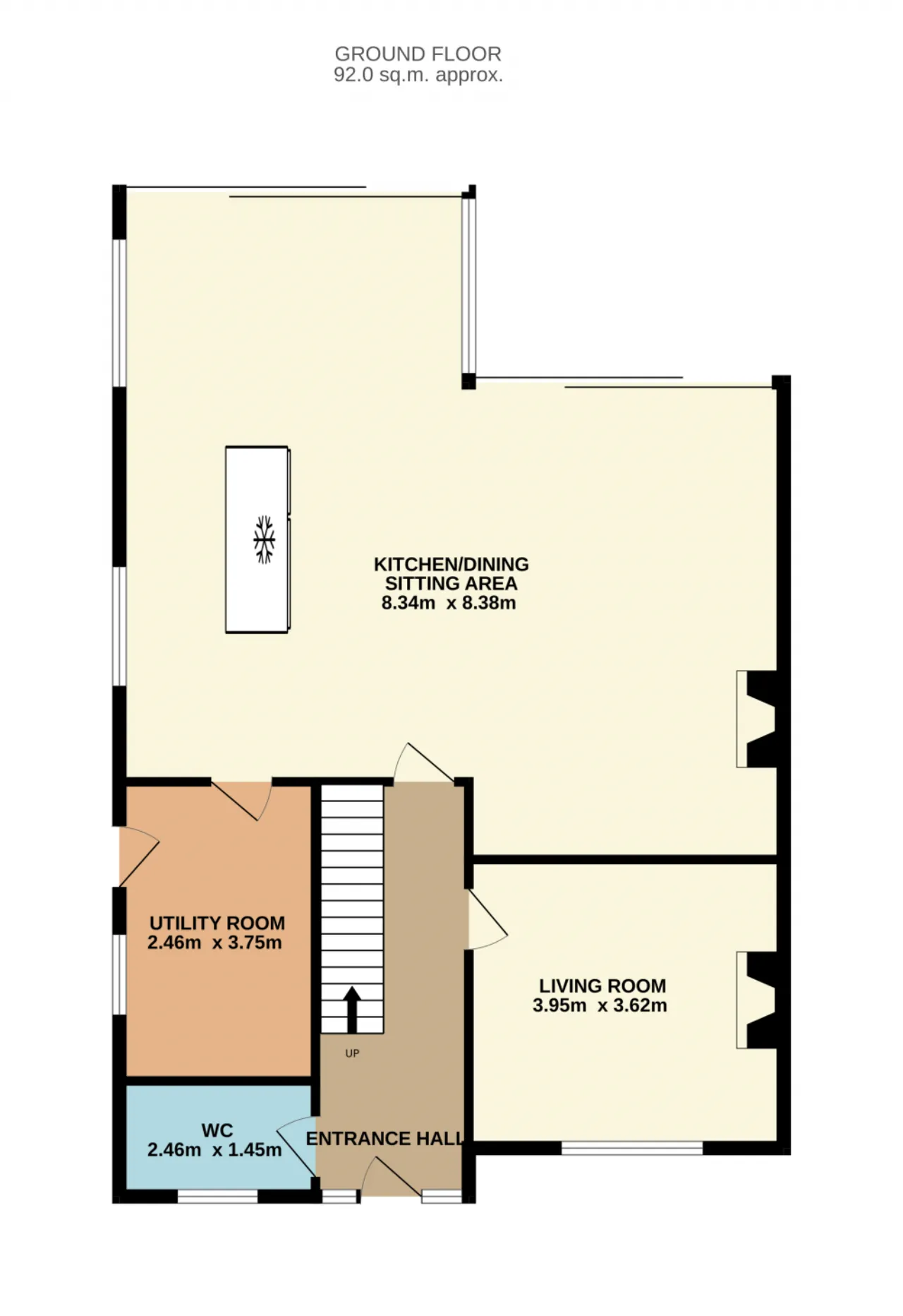 Kitchen: Fully fitted contemporary style kitchen with Quartz worktops, central island unit, integrated Neff appliances, extensive storage and Ragno tiled floor.