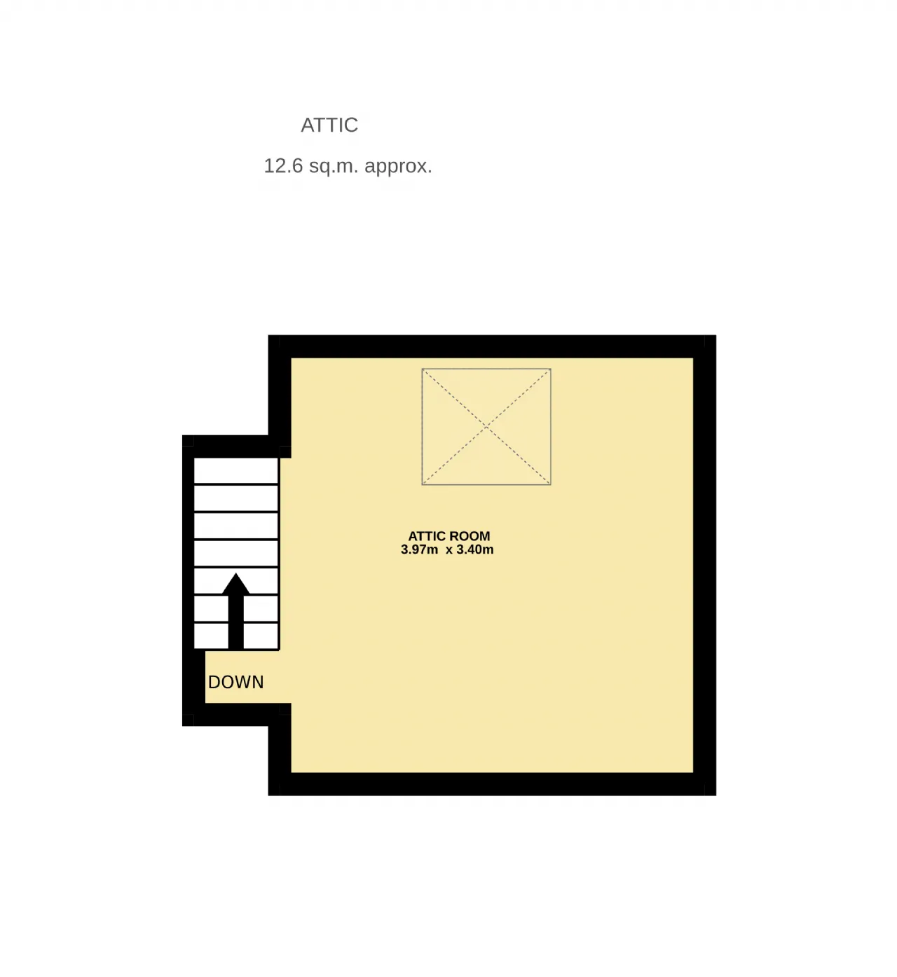 Attic Room: Spacious bright room, laminate floor, velux roof light, eaves storage.