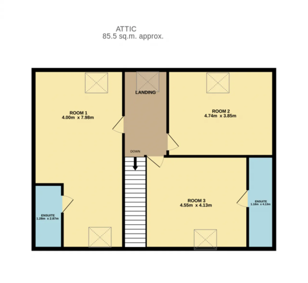 Attic Rooms: Carpet on landing with Velux window, divided into three rooms, Room 1 large room with carpet flooring, extensive built in wardrobes and drawers, wall mounted mirror feature, en-suite, duel aspect windows, attic access. Room 2- Carpet flooring, rear aspect Velux window.. Room 3- Carpet flooring, front aspect Velux window, en-suite.