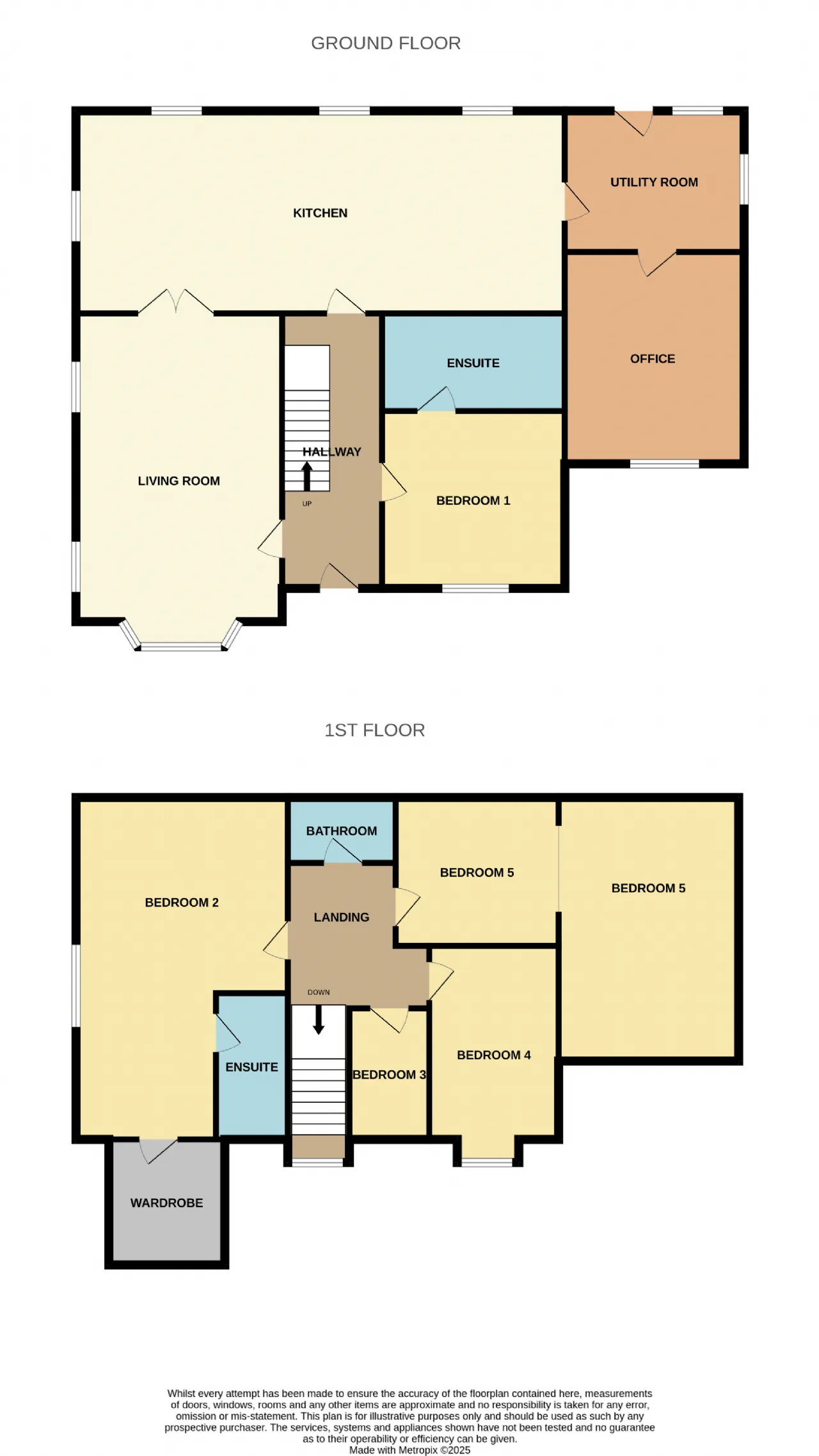 The ground floor offers a spacious living room, bedroom with ensuite shower room, open plan kitchen/dining area, utility room and office. Upstairs there is a family bathroom, 4 bedrooms with the master bedroom ensuite and offering a good sized walk in wardrobe.