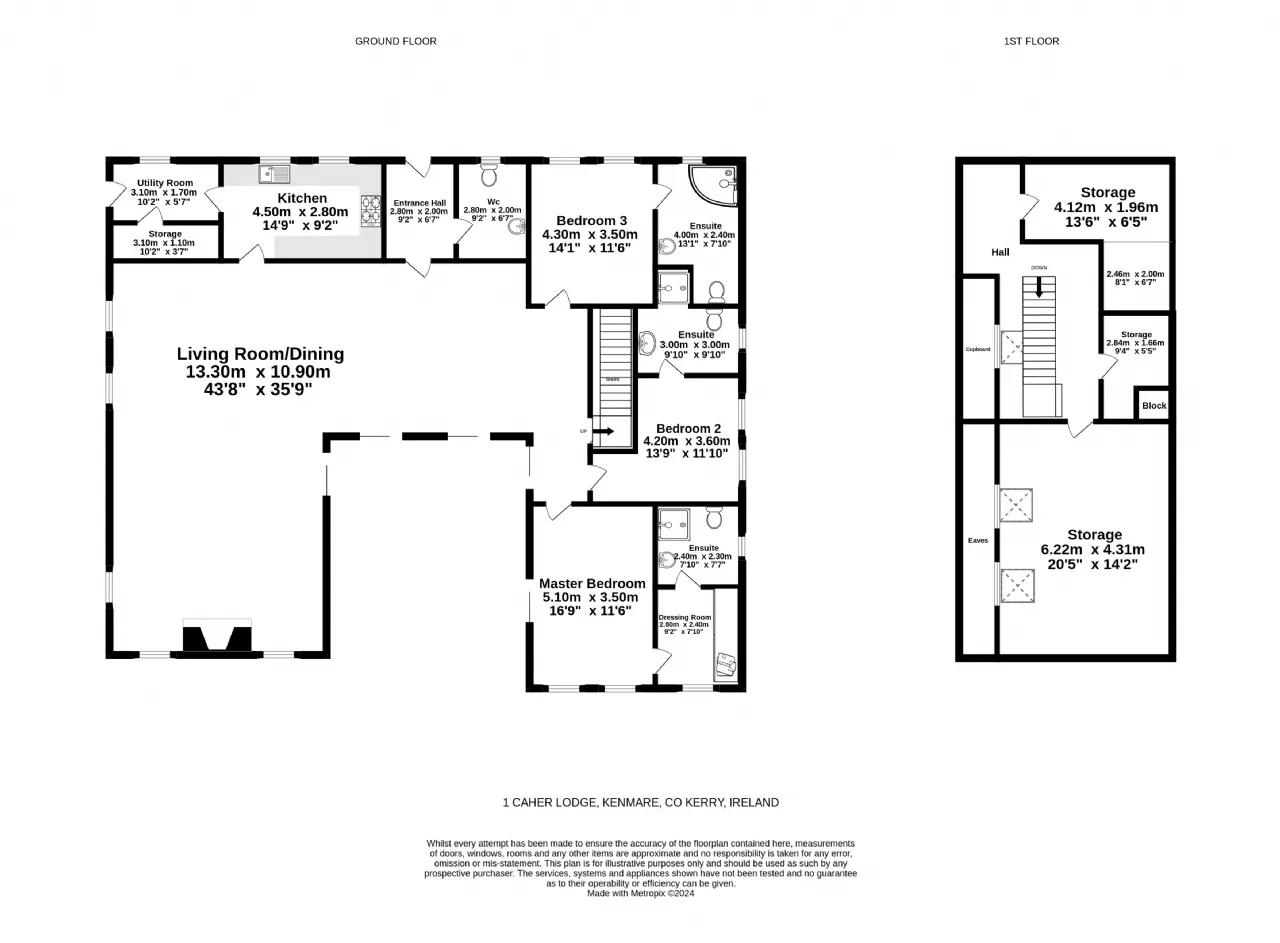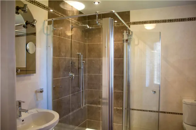 En-suite and Dressing Area 4.10m x 4.80m Ensuite WC. WHB. Large shower area fully tiled. Dressing area contains a large amount of wardrobe space. High quality finish, thermostatically controlled heating. Curtains, light fixtures and blinds.