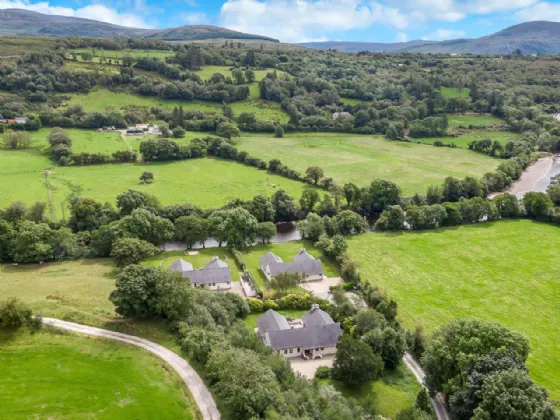 Set on c.0.57 acres (0.23 hectares) with southerly aspect. Prime location on the banks of the Roughty with views of the river and the countryside beyond.