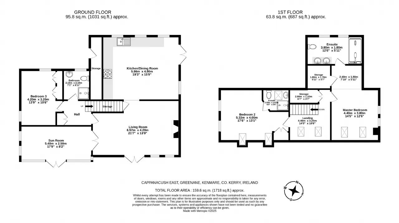 1718 sq. Ft of accommodation which consists of a cosy living room featuring a large wood-burning stove. An adjoining sunroom ideal for relaxing and enjoying the sweeping coastal views. A spacious kitchen and dining area located at the rear of the property. One ground-floor bedroom and a family bathroom. Two ensuite bedrooms on the first floor, offering comfort and privacy.