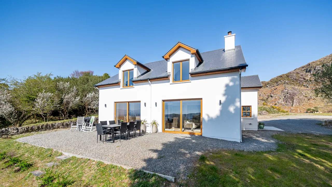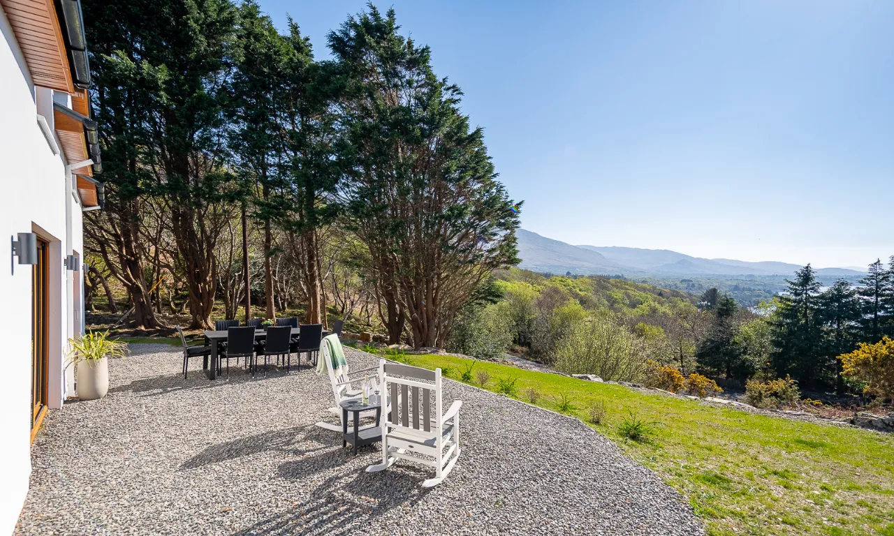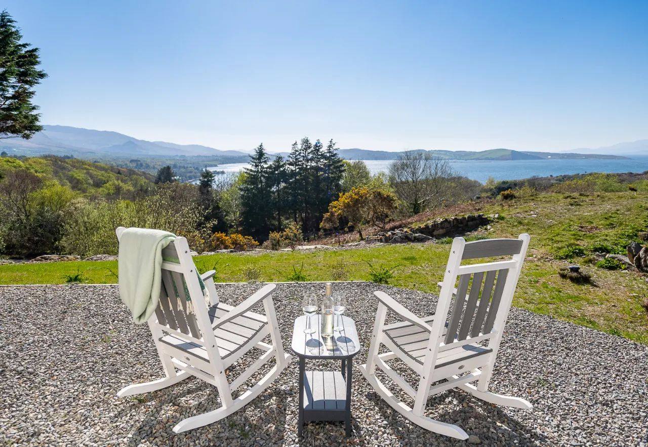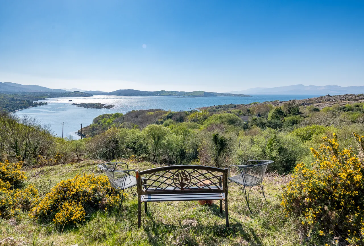 Sitting on the patio, you can enjoy the views of Ardgroom Harbour, its islands and Kenmare Bay. There are multiple seating areas throughout the property to take advantage of the amazing views…one point being a panoramic view from Ardgroom to Kilmackillogue Harbour, with Kenmare Bay and the McGillycuddy Reeks in the distance.