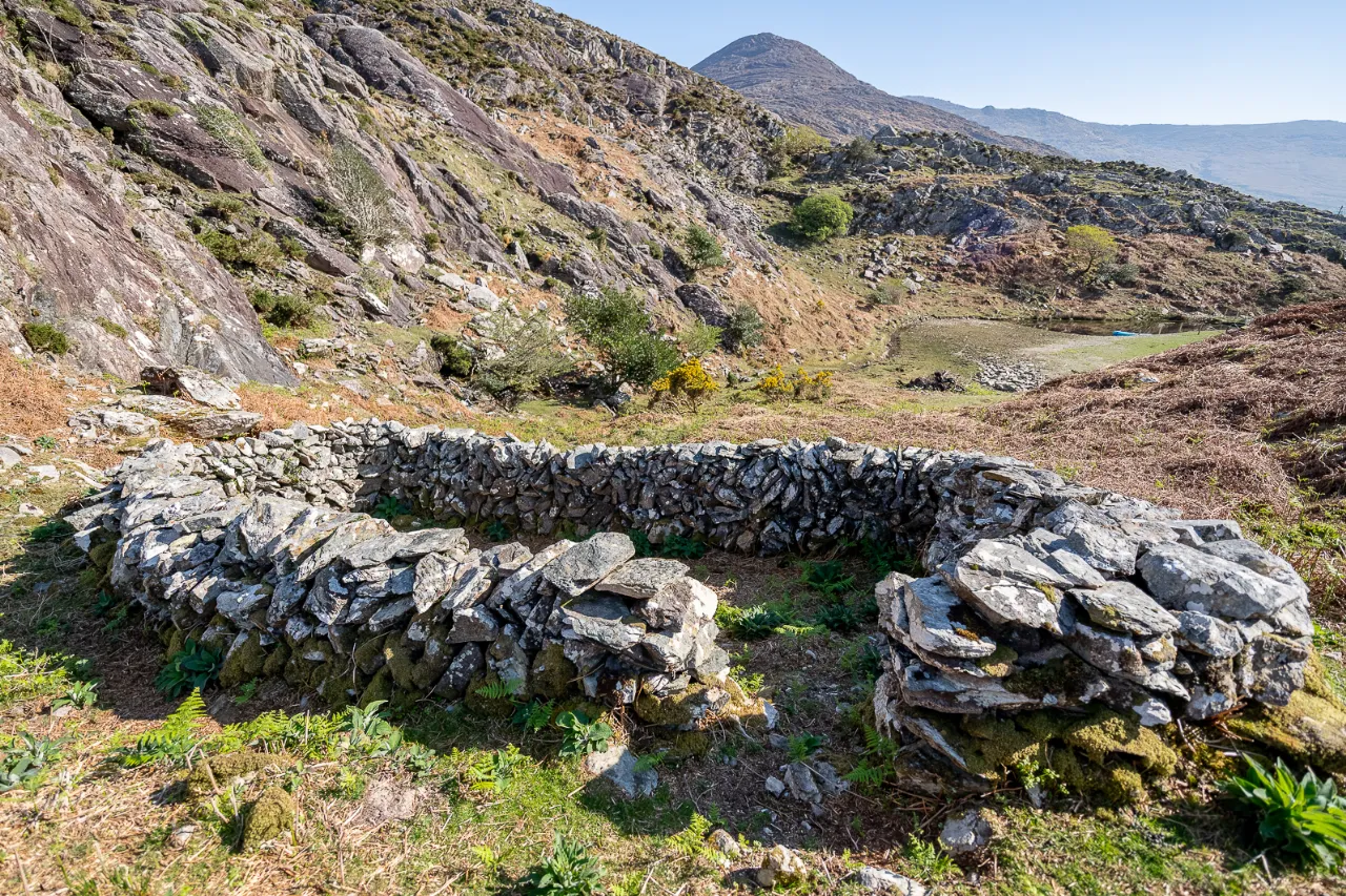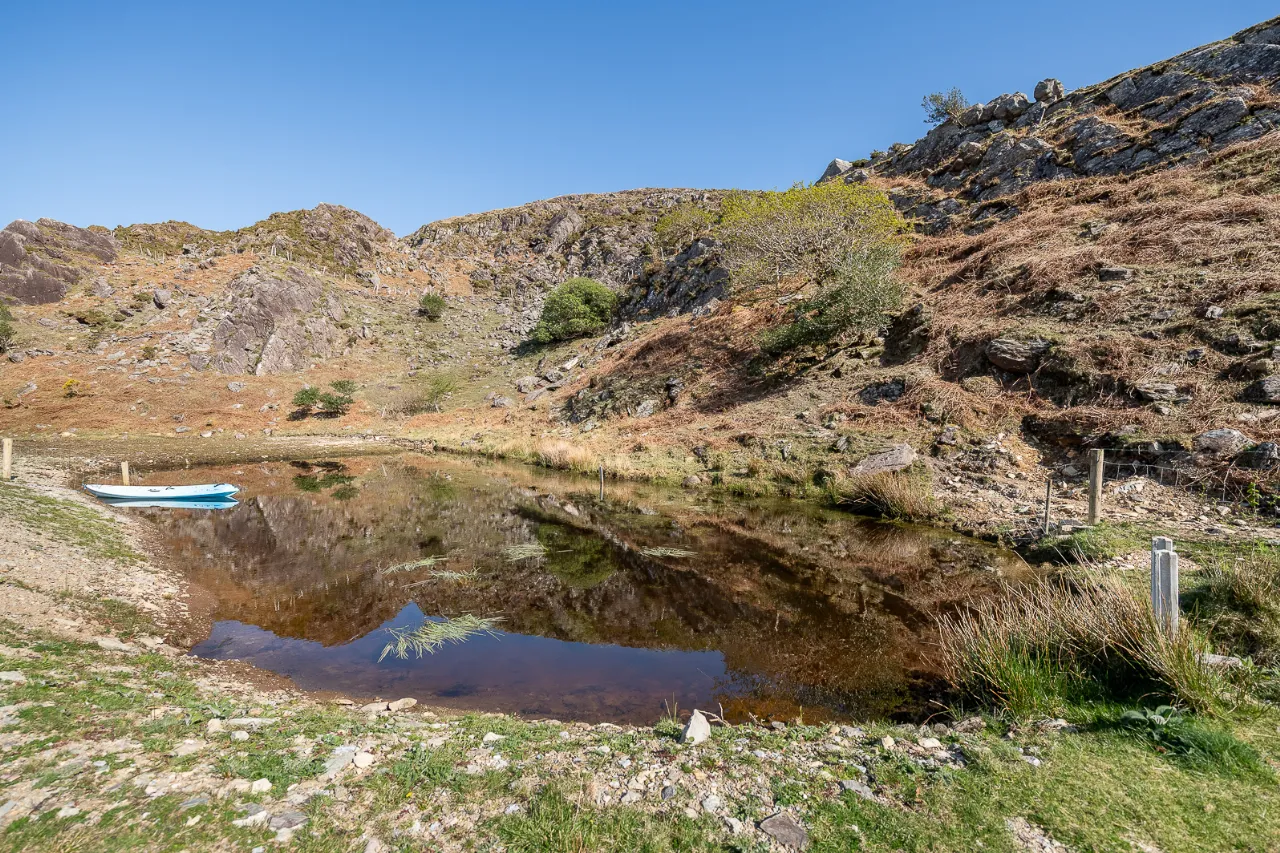 Situated on 3.67 hectares (9.07 acres) on the lower slopes of Knockfadda Mountain, the grounds immediately around the house have recently been landscaped. You will have your own mountain streams, which pass by the old stone sheep enclosure and into the small lake. The stream continues through a grove of old trees and over a small waterfall beside the house. On the opposite side of the house from the stream and the waterfall, is an old grove of hawthorn and holly trees. The house boasts views out of every window!