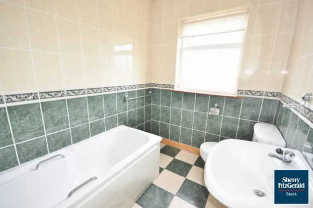 Family Bathroom 2.39m x 1.76m with bath, ceramic wall and floor tiles, whb, w/c and window.