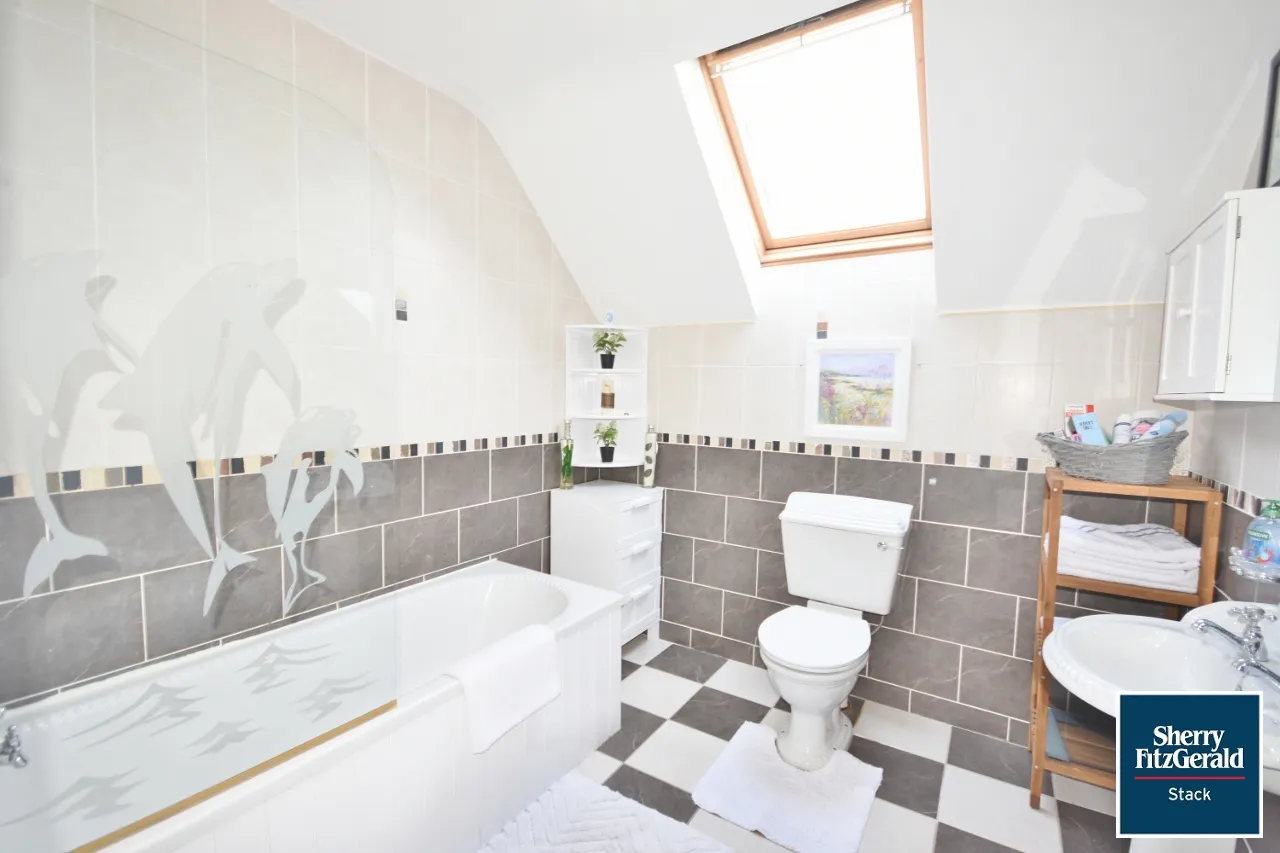 Family Bathroom 2.45m x 2.38m Triton T90si electric shower, ceramic wall and floor tiles & Velux window.
