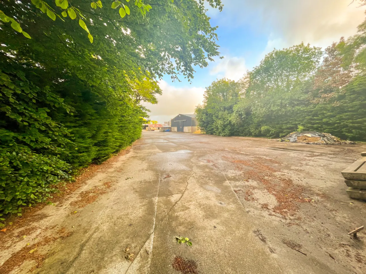 Extensive yard with modern farm buildings.
