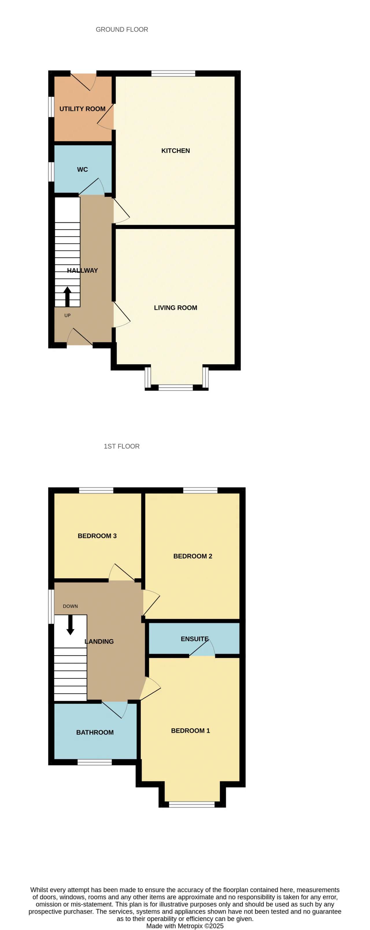 The property offers 3 bedrooms, one ensuite and a family bathroom on the first floor while on the ground floor is a living room kitchen/dining room, utility and w.c