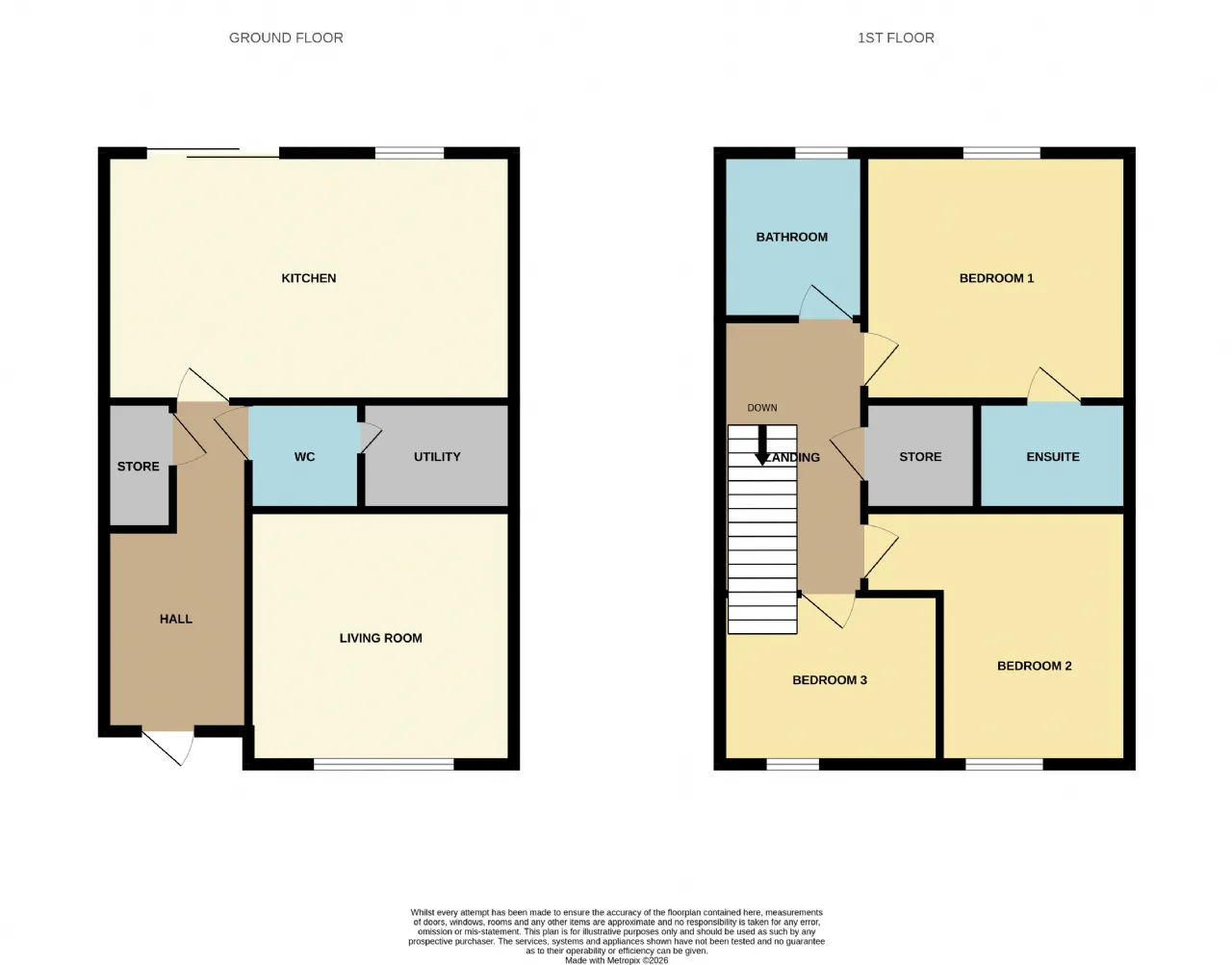 En-Suite 2.0m x 1.5m With shower, wc, whb, tiled floor, tiled splashback, heated towel rail, shower screen, mirror.