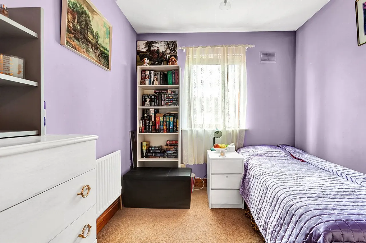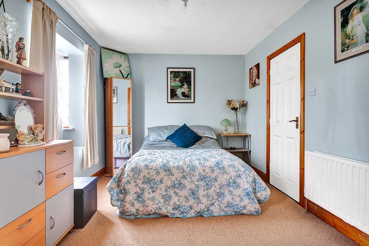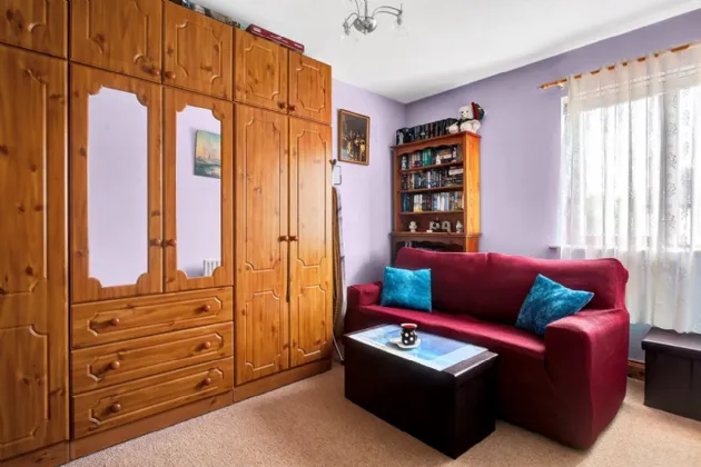 Bedroom 3 3.87 x 4.59 Fitted wardrobe. Carpeted. Curtain & poles x 2. 2 x net curtains. Light fitting.