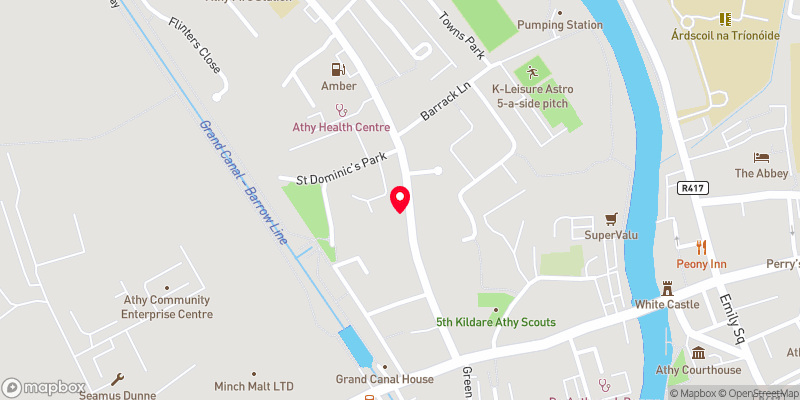 Athy is a charming market town at the meeting of the River Barrow and the Grand Canal in south-west County Kildare, 72 kilometres southwest of Dublin. A population of 10,490 (2011 Census preliminary results) makes it the sixth largest town in Kildare and the 50th largest in the Republic of Ireland, with a growth rate of 58% since the 2002 census.