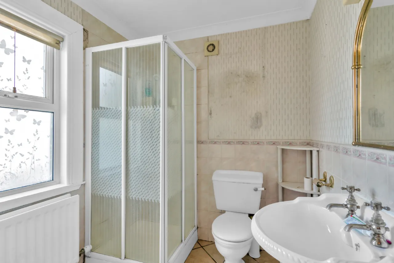 Shower Room 2.723 x 1.936 Toilet. sink. Cubicle shower. Tiled floor. Blind. Airing press.